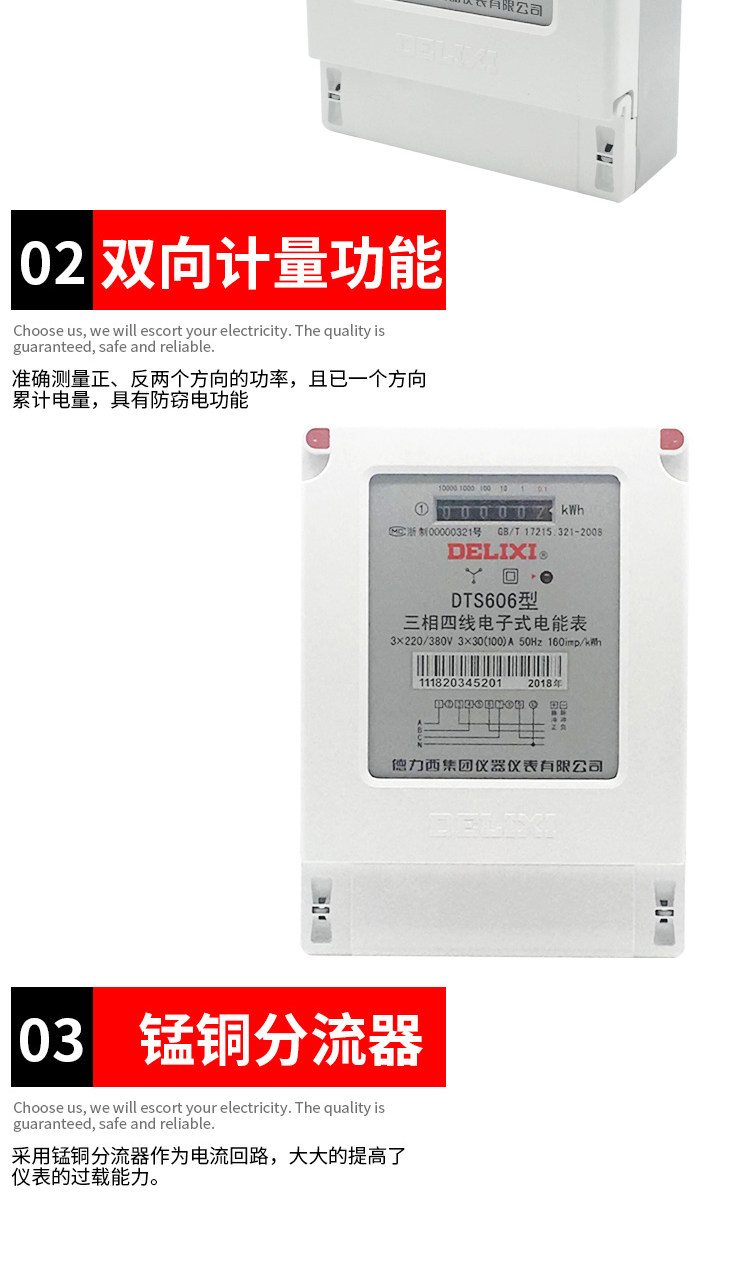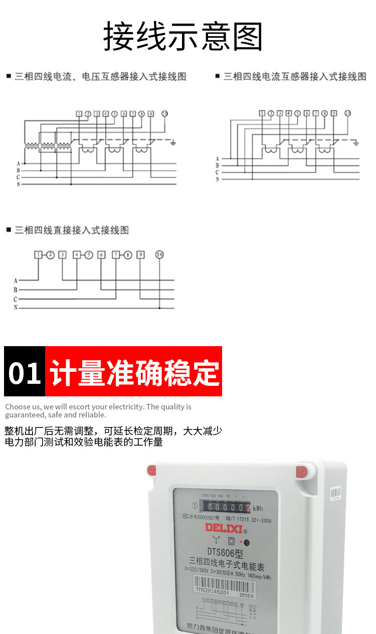 Delixi DTS606 三相 4 線式電力量計 380V 電子有効電力量計高精度変圧器タイプ