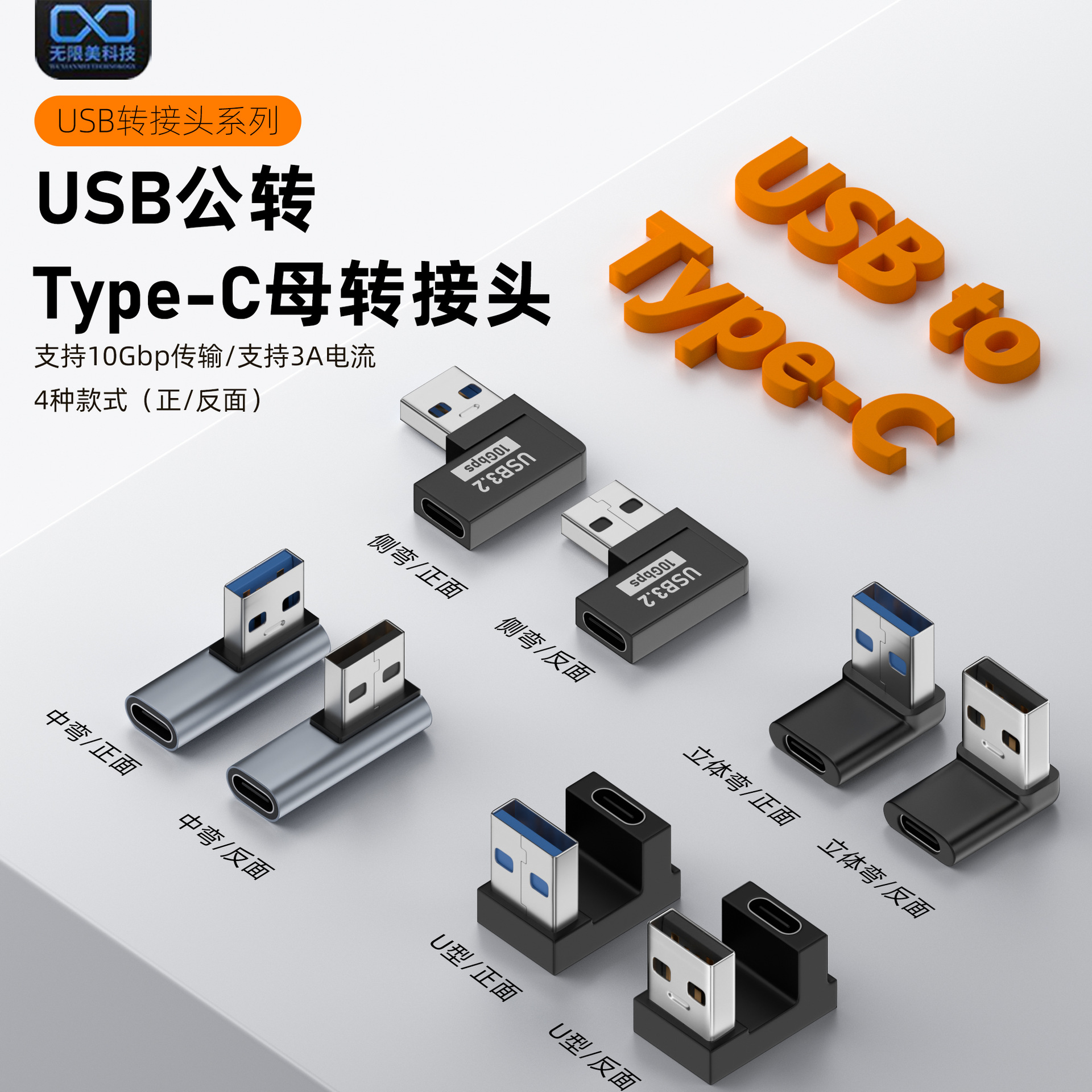 Usb a公転type-cメスアダプタ全機能3.1携帯電話アダプタ立体上下曲げ双方向アダプタ