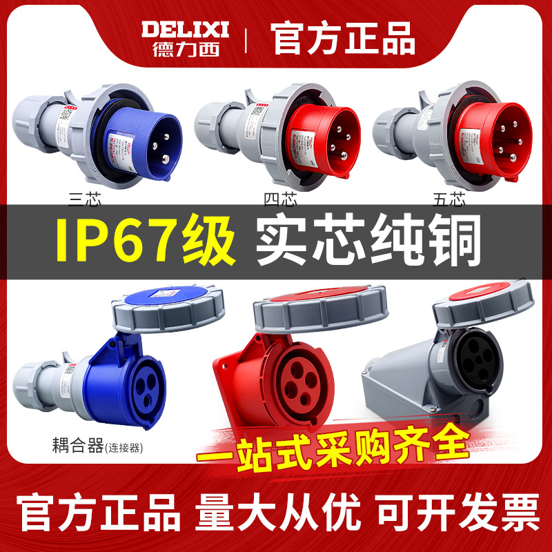 徳力西IP67防水工業航空プラグ32aソケット3芯4三相電380vメス63Aコネクタ