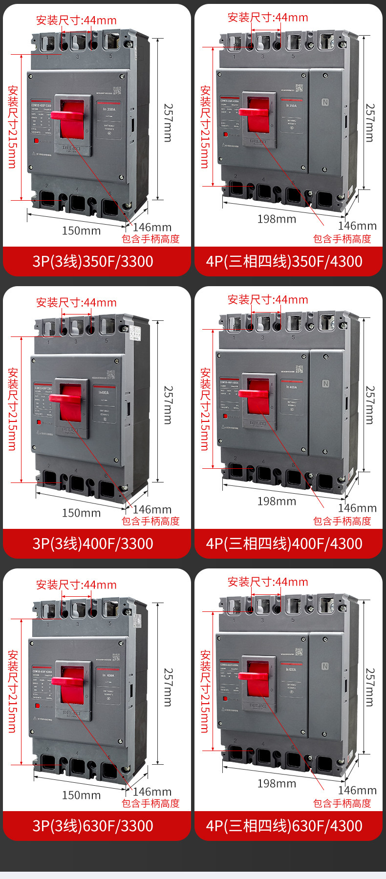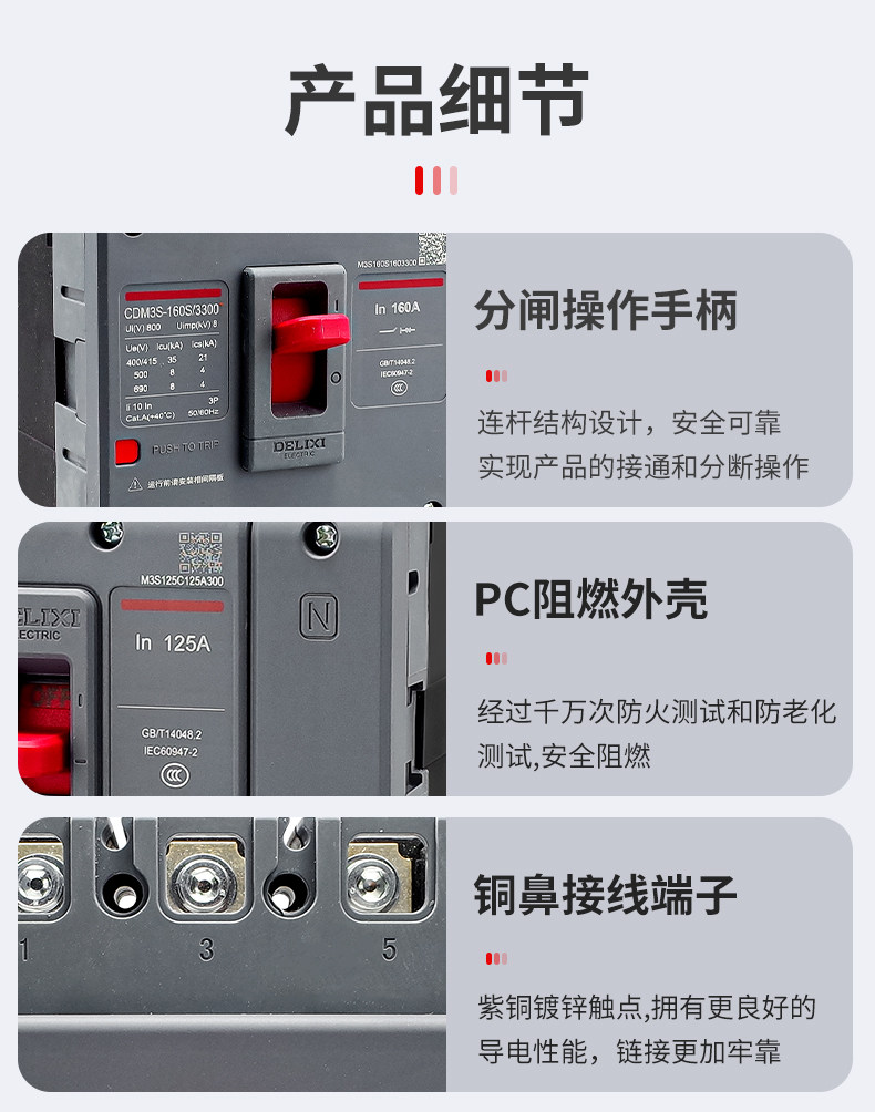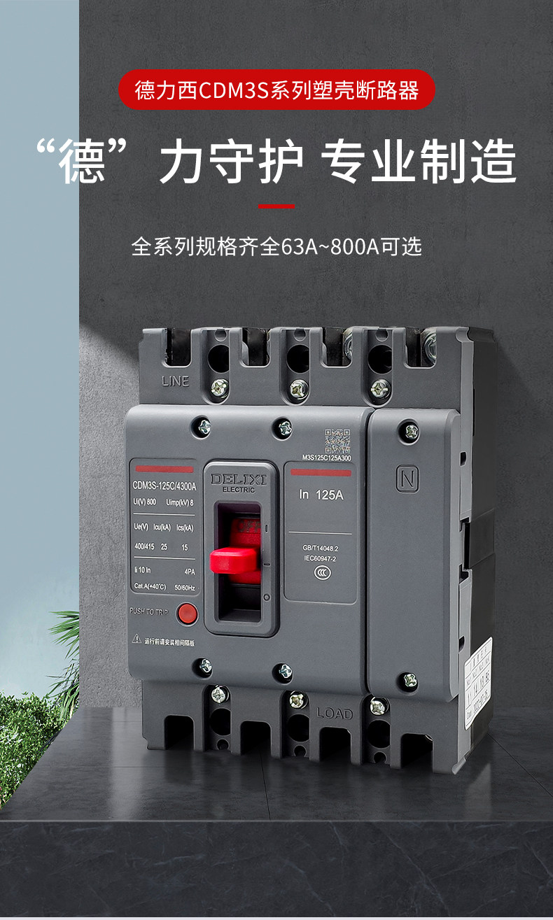 Delixi モールドケースサーキットブレーカーエアスイッチ CDM3S-63A100A200A400A630A 三相 4 線式 3P