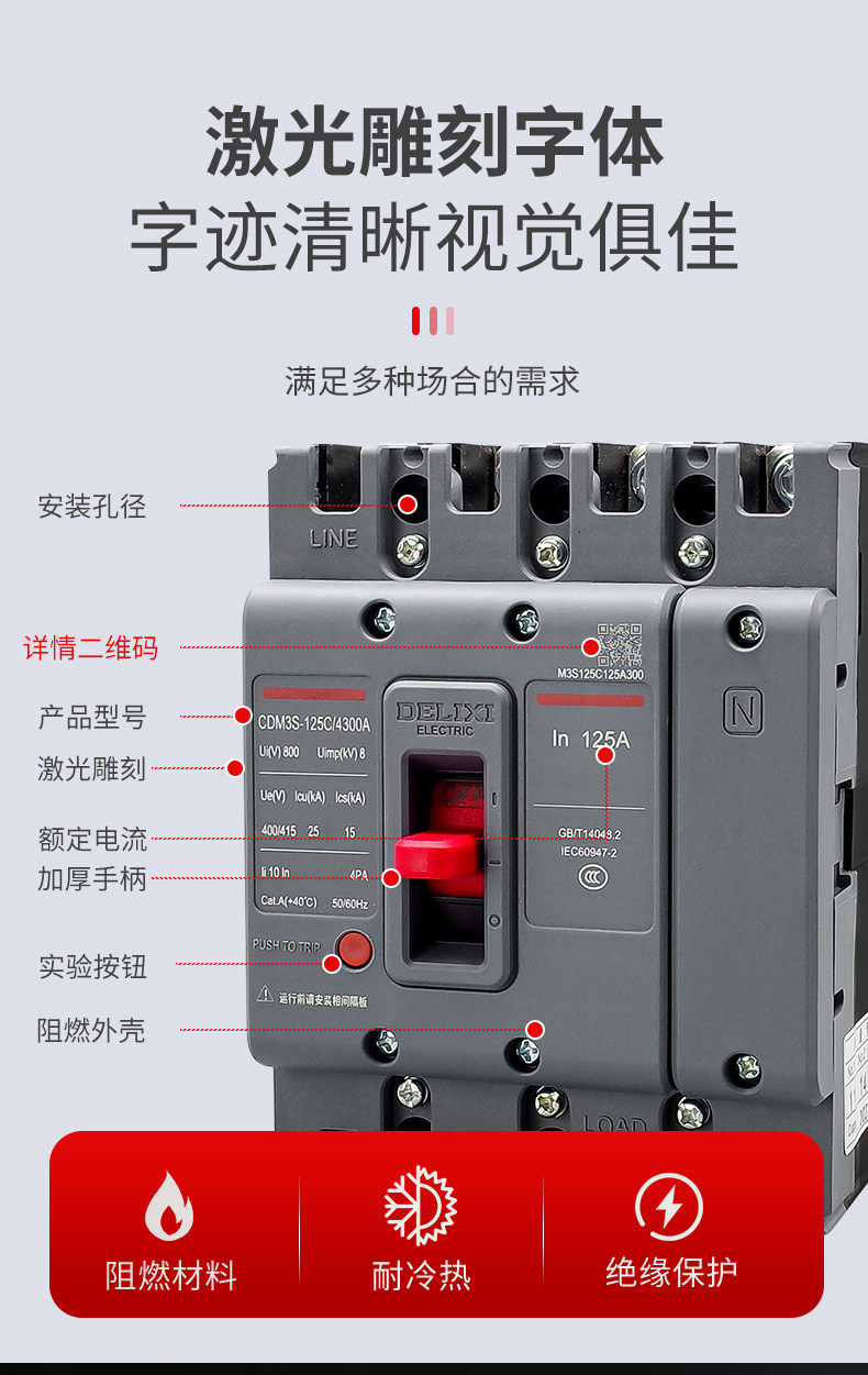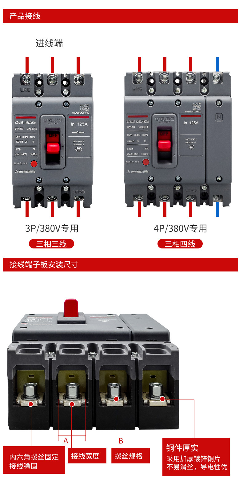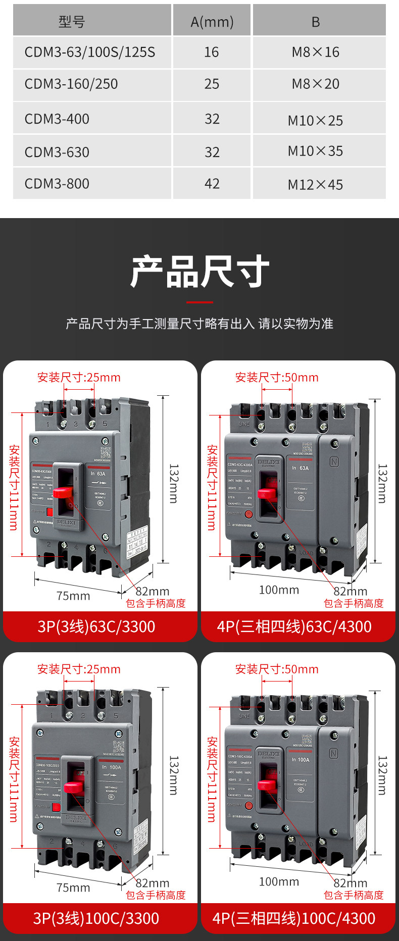 Delixi モールドケースサーキットブレーカーエアスイッチ CDM3S-63A100A200A400A630A 三相 4 線式 3P
