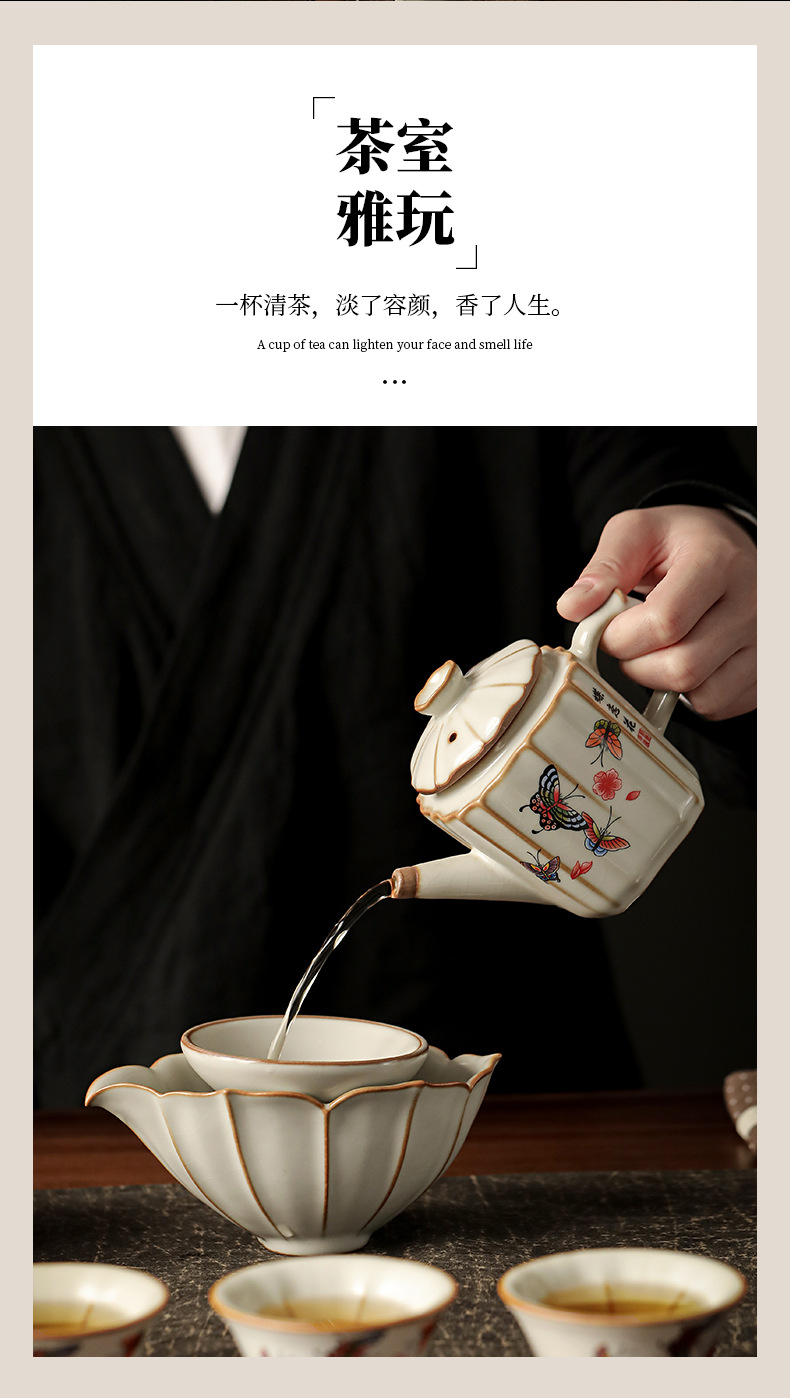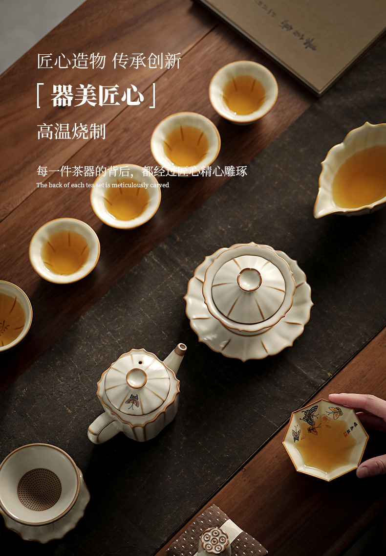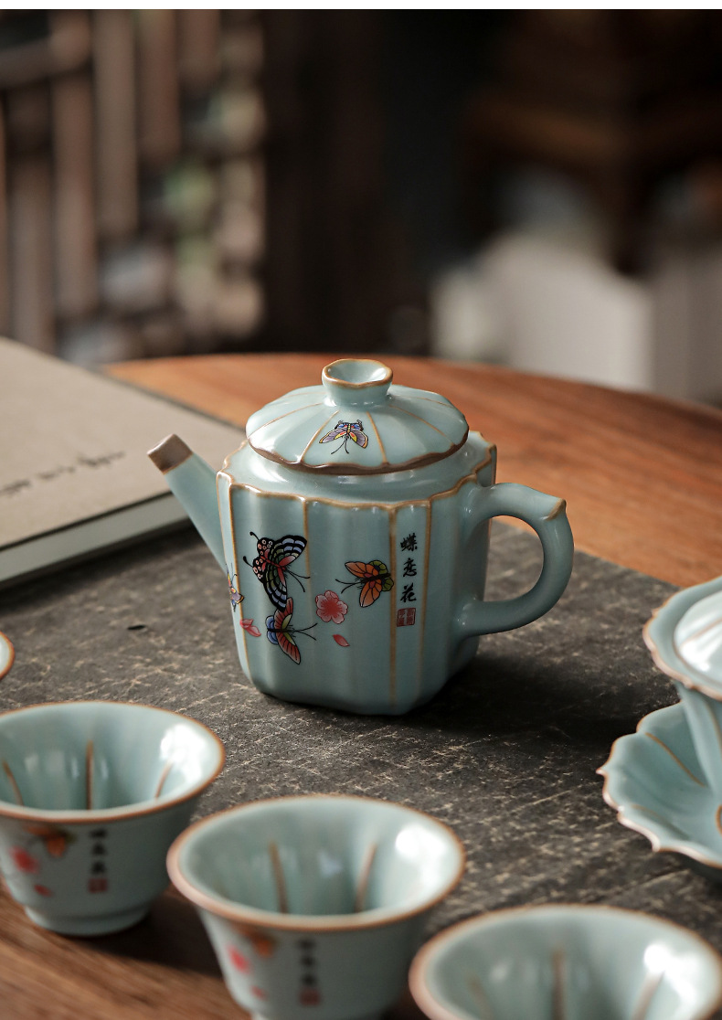 柏韻蝶恋花壺12頭のギフトボックスの豆黄