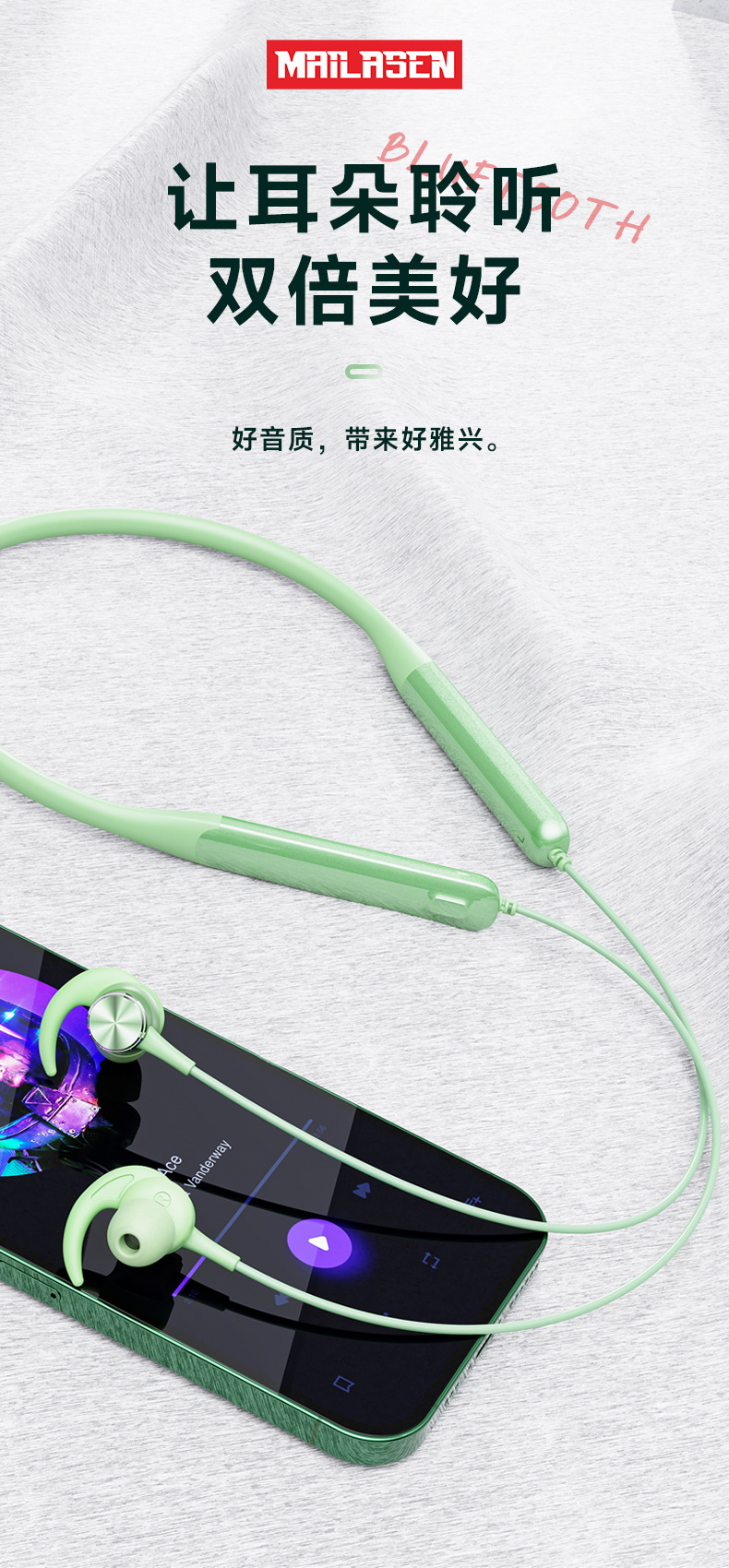 超长续航大电量蓝牙耳机无线颈挂脖式运动防水新款跑步专用高音质