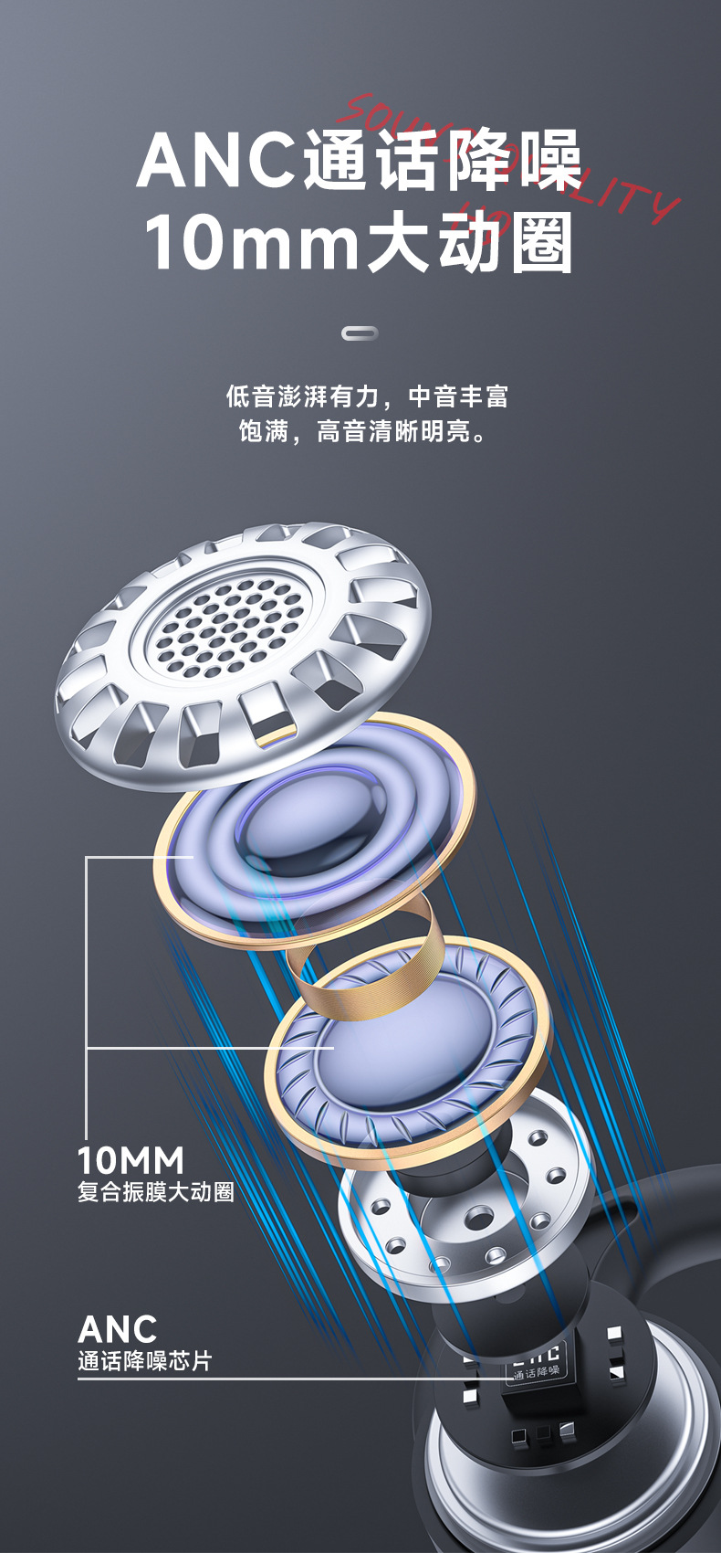 2025年版クロスボーダーBluetoothヘッドセット、ネックバンド型、立体音、スマートノイズキャンセリング、スポーツ用、2026年新モデル、英語図案パッケージ