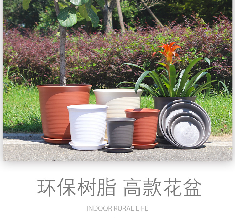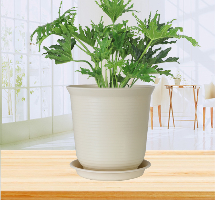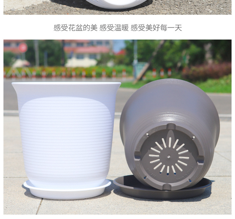 厚い純白北欧風植木鉢シンプルな円形口縦縞プラスチック植木鉢天国鳥客間ベランダ鉢植え