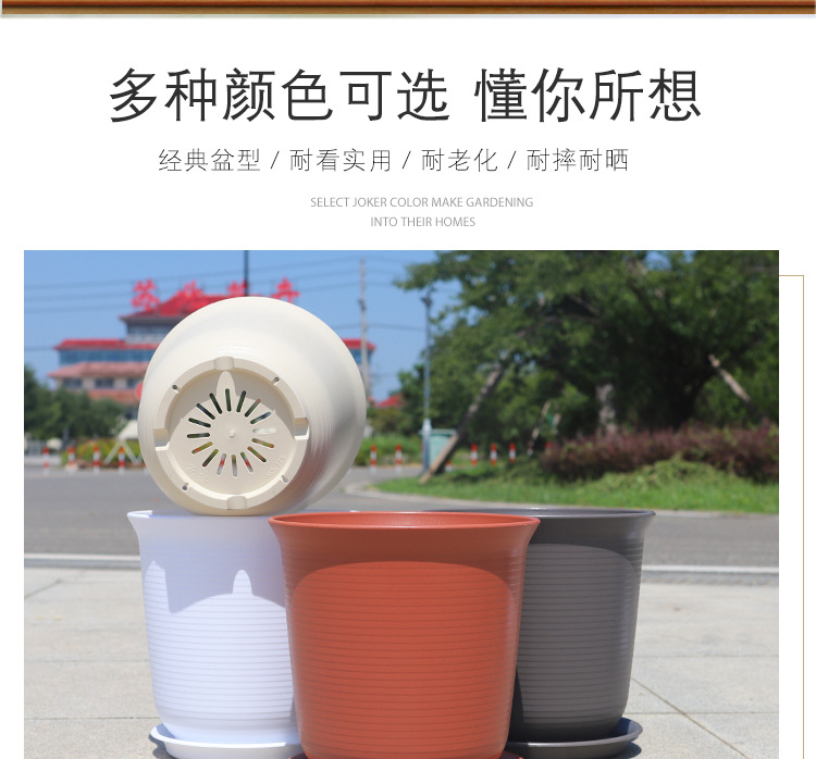 長盛工場直発植木鉢プラスチック卸売りベランダ緑羅鉢植えいちご月季特大サイズ増厚ガロン盆