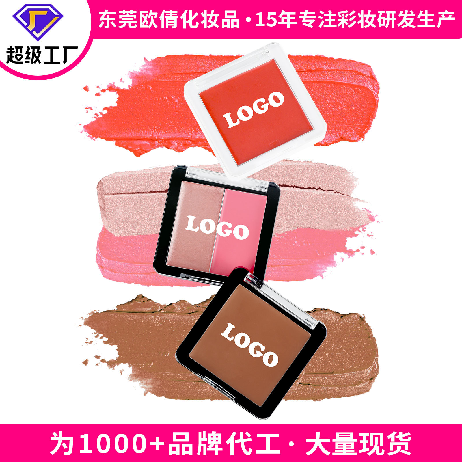 国境を越えた既製カスタム フェイシャル メイクアップ ブラッシュ 防水 長持ちするメイクアップ カラー ブライトニング 立体ロゴなし ダブルエンド ブラッシュ スティック
