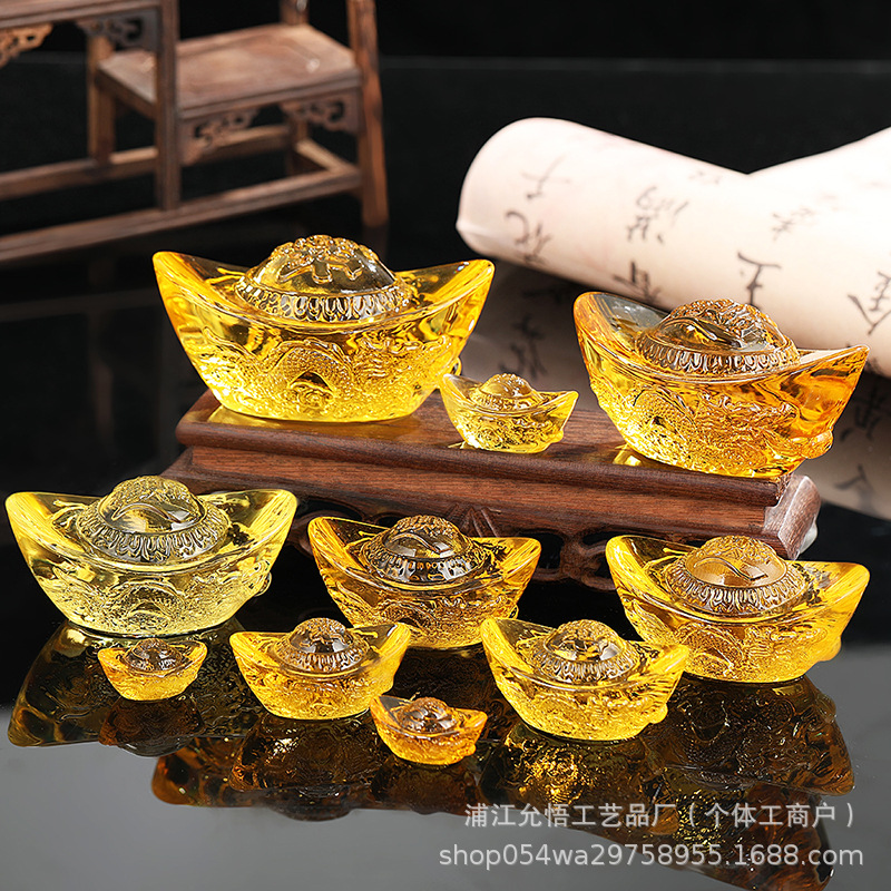 水晶龍紋元宝、釉薬金元宝、招財金玉、満堂金玉、仏様供養、家庭風水飾り、中国風ギフト