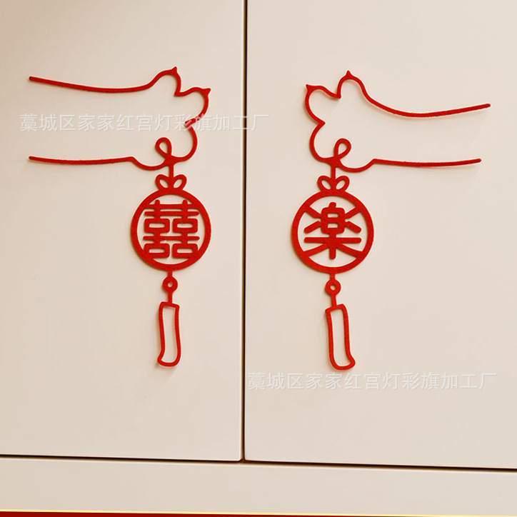 結婚祝い用品の喜字メーカーの卸売りの大きいサイズの喜字の窓の花の喜字の玄関の植毛の喜字はお祝い用を貼ります。