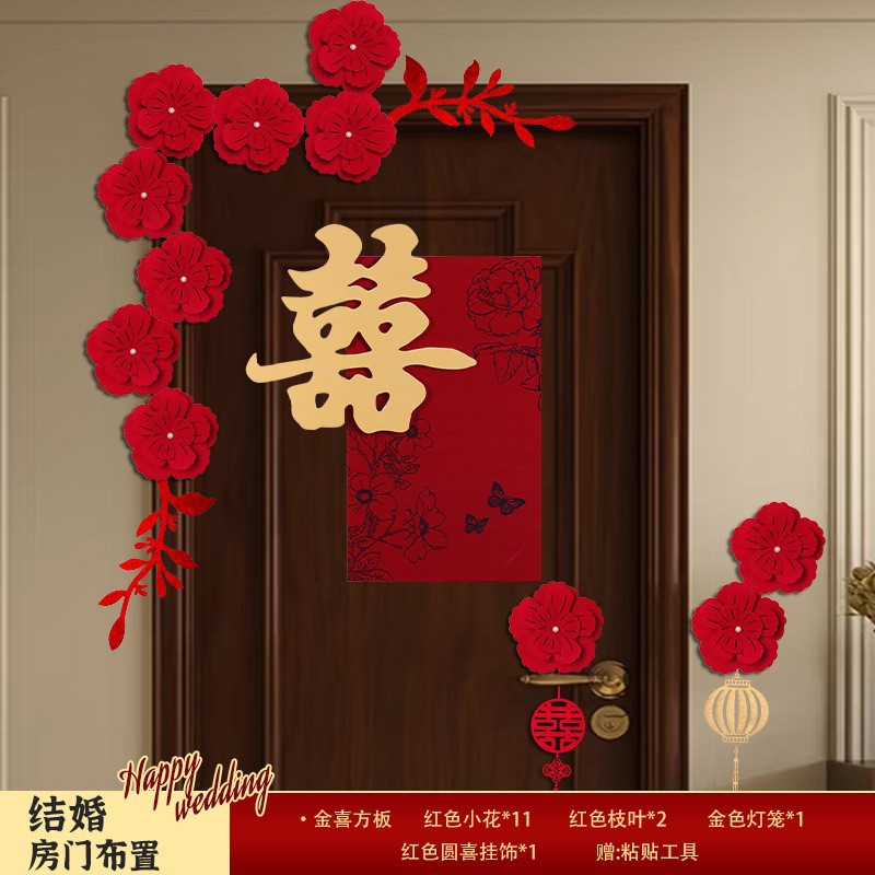 婚房布置结婚女方卧室房门喜字贴纸婚礼囍字门贴装饰婚庆用品大全