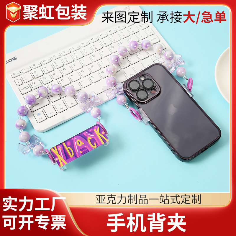 漫画風のかわいい文字入りスマホケース、背面クリップ、コントラストカラーのストラップ、取り外し可能なナイロン製、紛失防止・落下防止、カスタム卸売