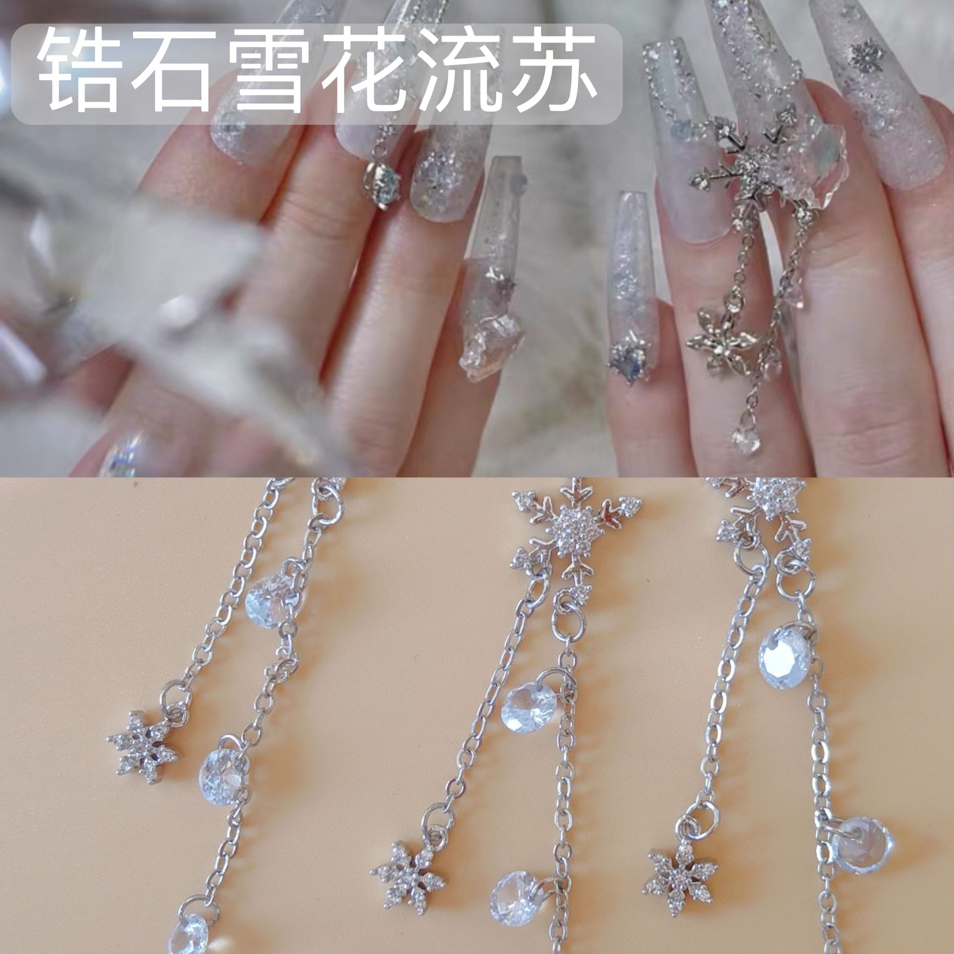 LZ美甲饰品冬季圣诞雪花吊坠流苏轻奢超闪双层雪花锆石穿戴甲装饰
