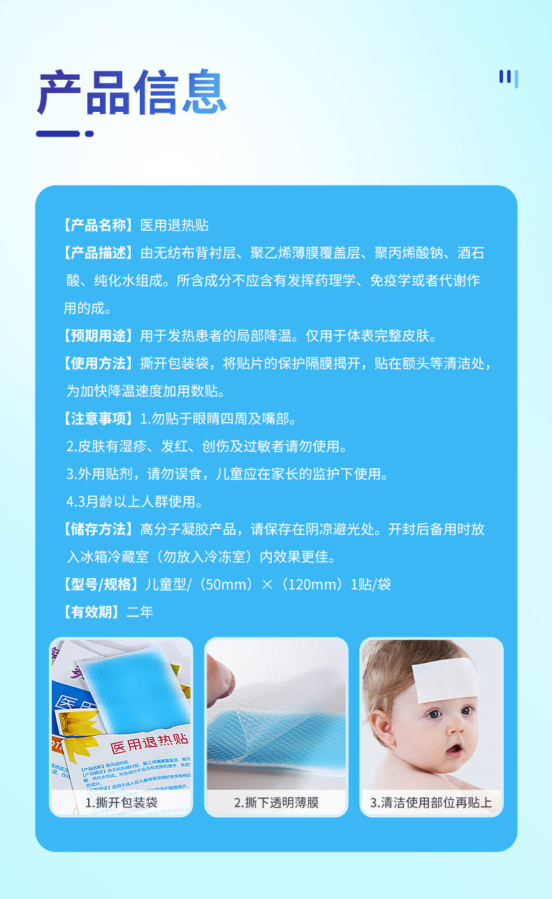 カスタマイズ可能な医療用子供用解熱パッチ、小児用物理冷却額パッチ、乳幼児用額冷湿布、冷却パッチ(OEM)