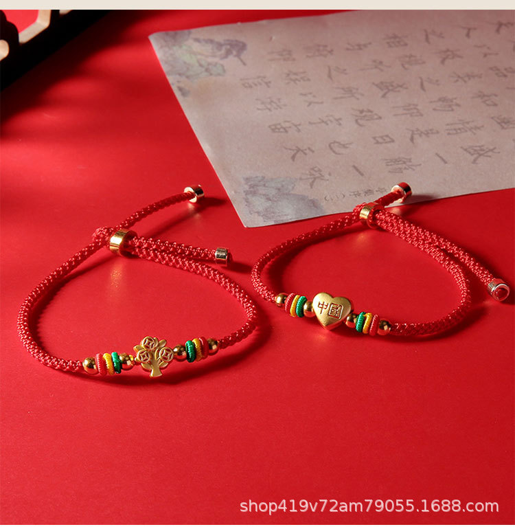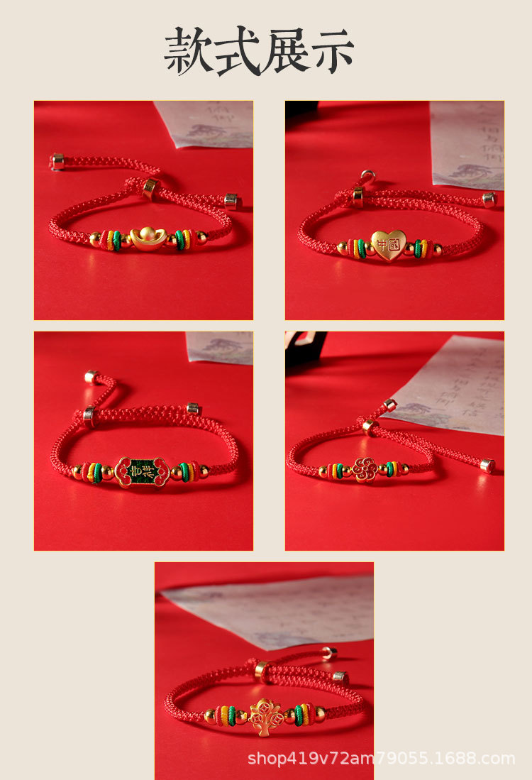 本命年吉祥红绳手工编织可调节转运手绳民族风男女款手饰礼物批发