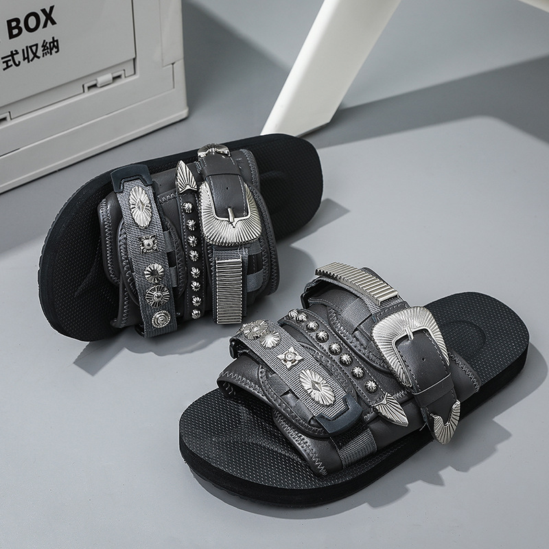 男性スリッパ2025新型リベット平底スリッパファッション
