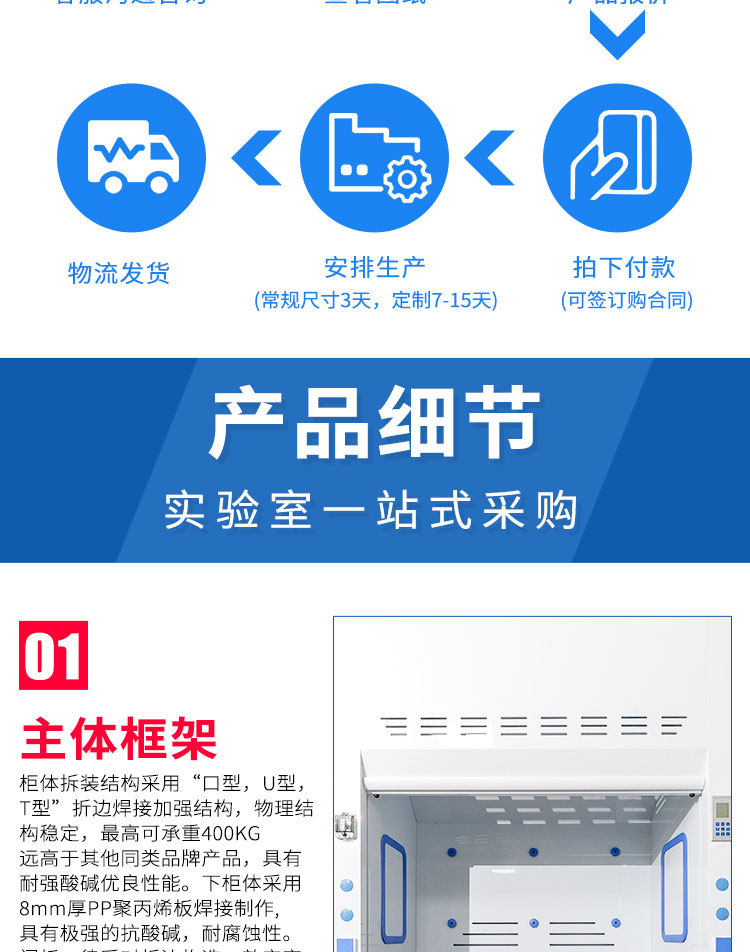 実験室防酸防腐pp通風キャビネット操作台pp通風キャビネット化学検査室実験台排気設備キャビネット
