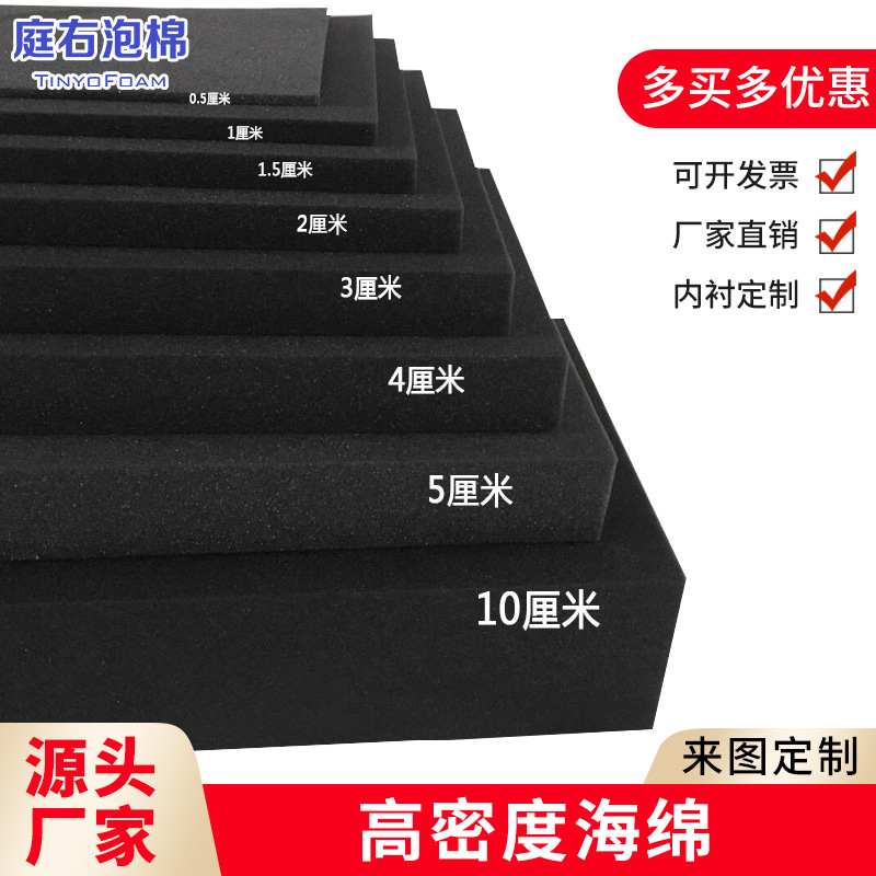 中高密度黒色スポンジマット大塊包装内張り防振防塵防音薄いpu発泡スポンジシートカスタム