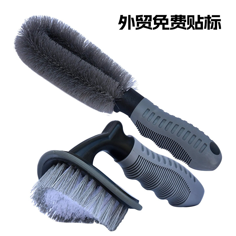 跨境亚马逊汽车直柄轮胎刷 车胎清洁刷 钢圈刷 脚垫刷 弧形轮胎刷
