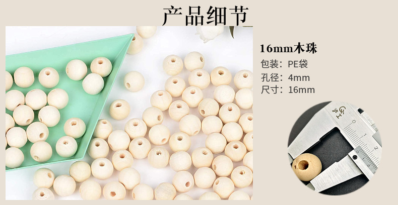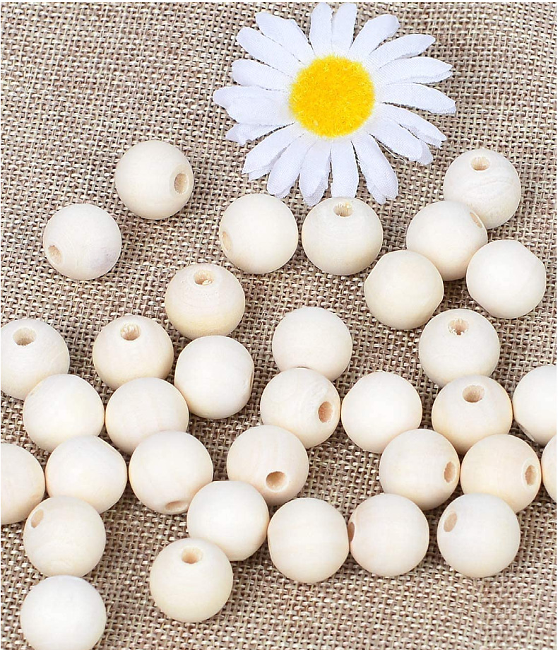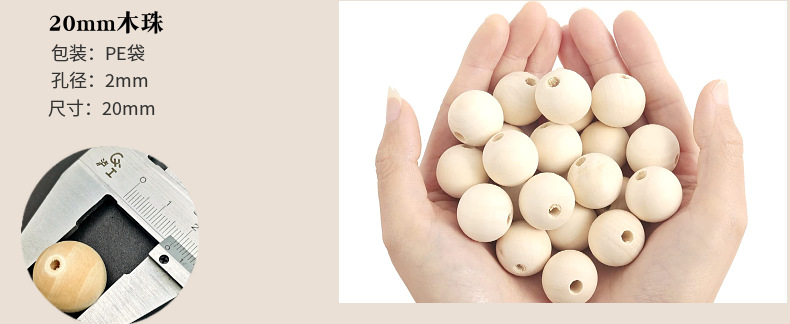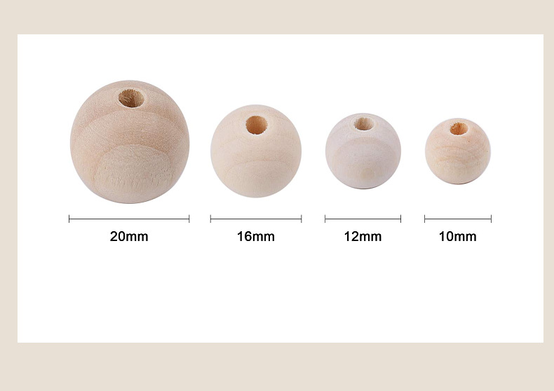 木製小玉、木製ビーズ、木製ボール、DIY用木製ビーズ、蓮の木製ビーズ、丸玉、小包装、原木色、小穴付き