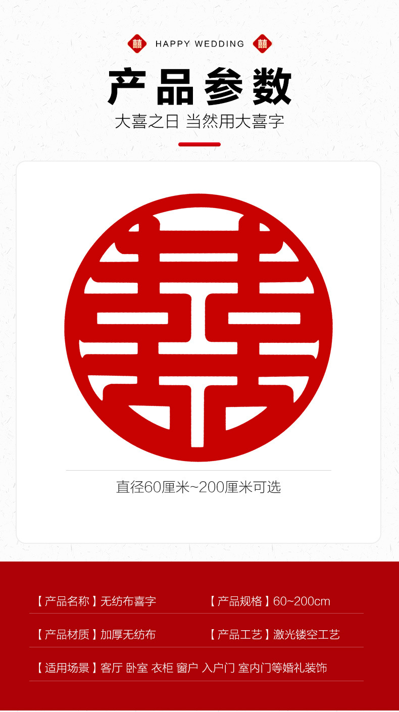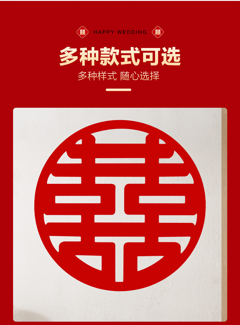 大ハッピー文字卸売ウェディング用品結婚式寝室ドアハッピー文字ステッカー結婚式囍文字装飾結婚式の部屋の装飾セット