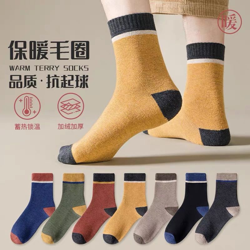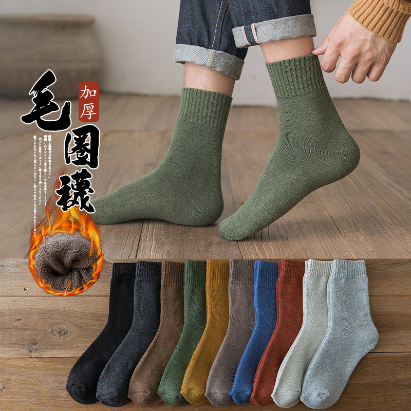 靴下男秋冬中筒靴下厚い保温毛輪靴下ベルベットタオル靴下防臭ストッキング男性厚い靴下