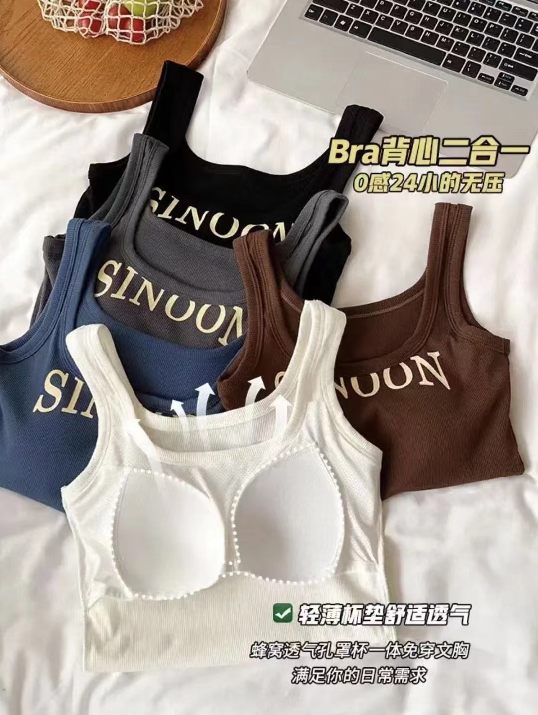 新款磨毛内搭美背内衣蕾丝花边吊带背心女外穿带胸垫无袖打底上衣
