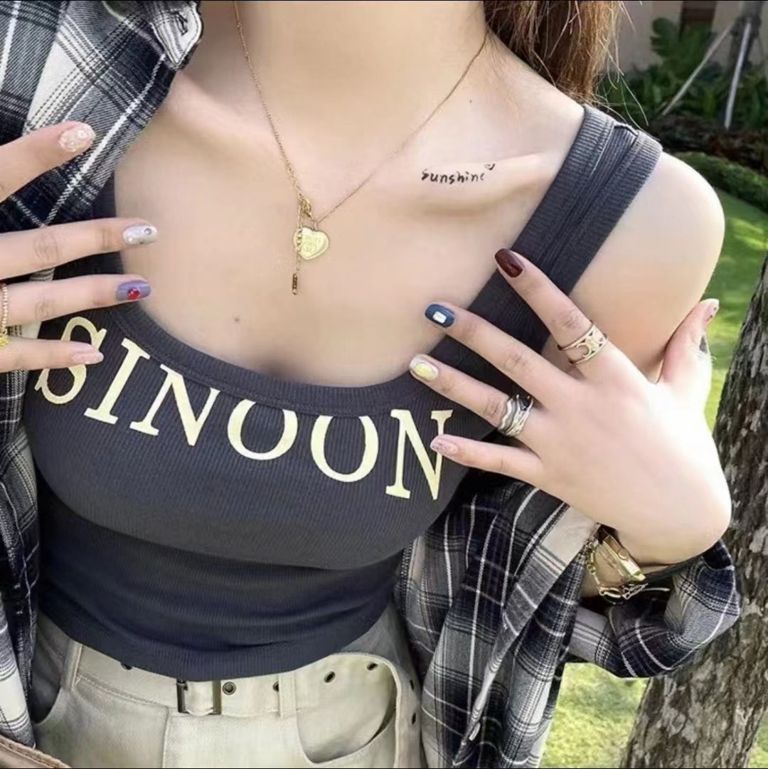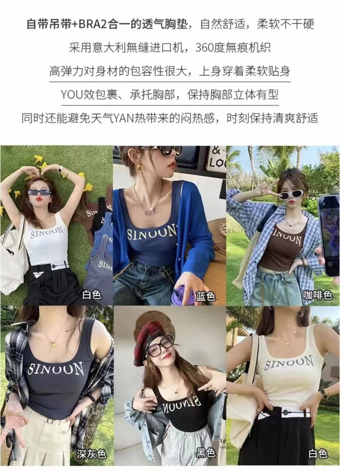 新款蕾丝纯欲吊带背心女白色显瘦百搭辣妹带胸垫外穿内搭打底上衣