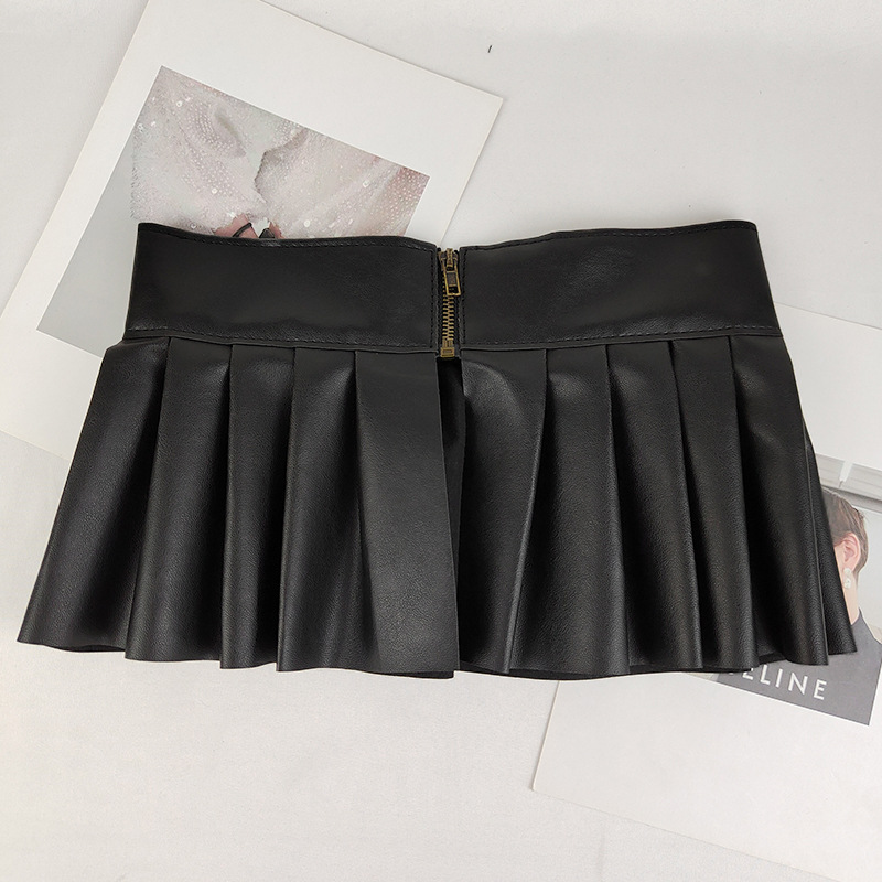 スカートの腰のシワのフリルの辺の皮のスカートの超幅の結び目のひもの装飾はスカートの皮のズボンの百のフリルのスカートのベルトの女性を配合します。