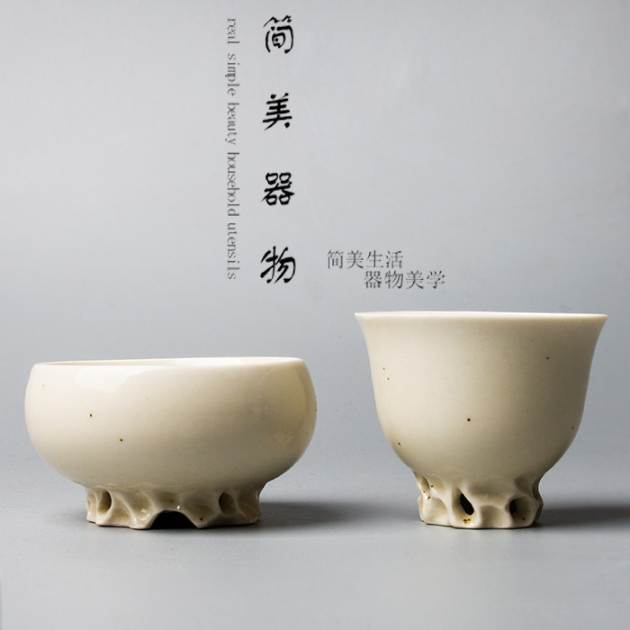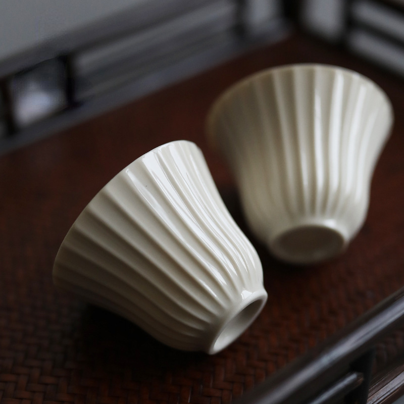 簡単で美しい白陶品茗杯の工夫の小さいお茶の杯の陶磁器の純粋な手作りのお茶の杯の主人の杯の個人の杯