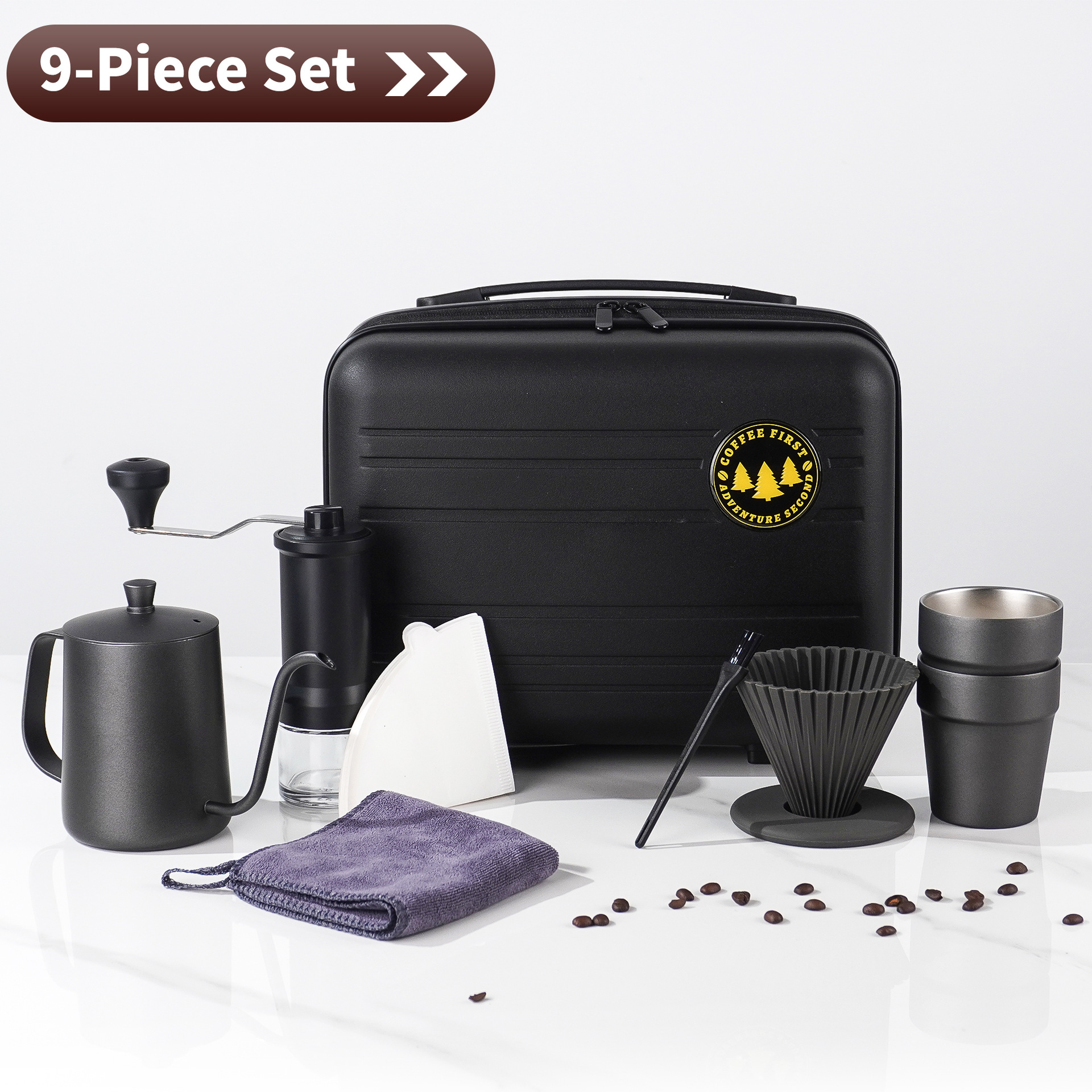 国境を越えた屋外携帯型手沖コーヒーポットセット手沖ポット豆磨き機コーヒー器具キャンプコーヒーボックス