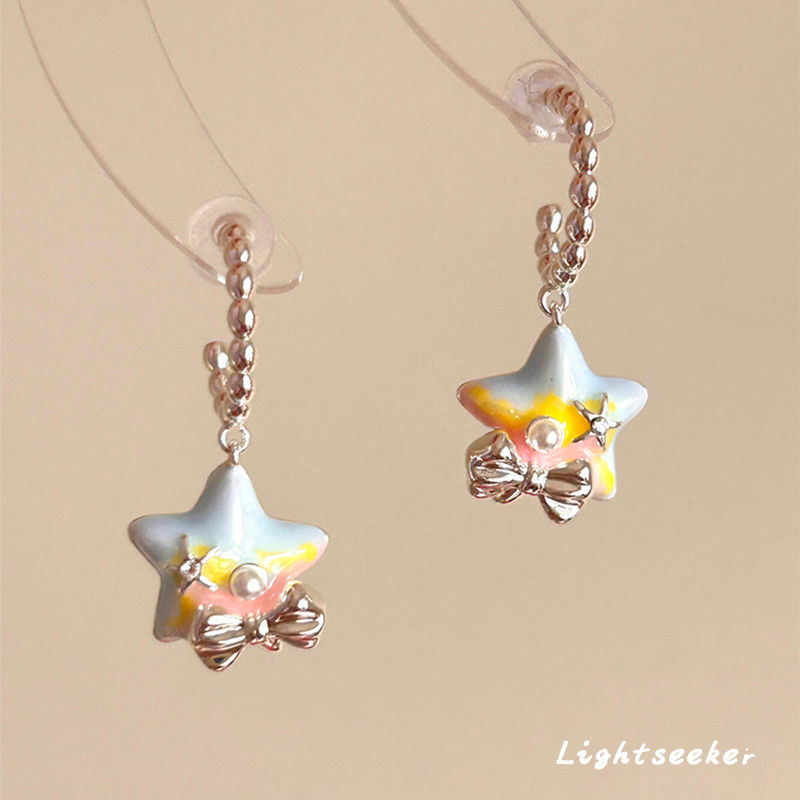 夏のカラードーパミングラデーション星蝶結びイヤリング小衆高級感学生ins爆金耳飾り女