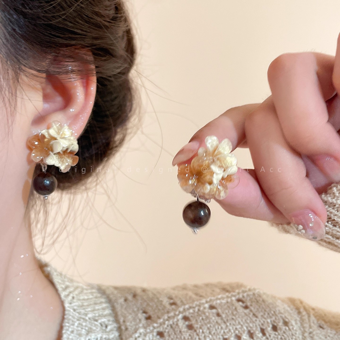 秋冬2025高级耳钉中式复古晕染花朵设计耳环清新气质甜美耳饰
