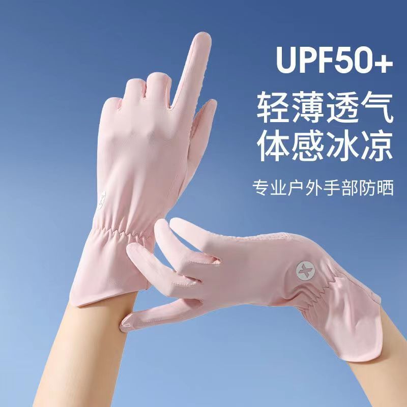 夏の日焼け止め手袋女性の氷糸超薄型自転車滑り止めタッチパネル通気性紫外線露出指屋外運転