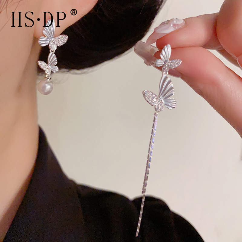 夏の新しいファッション多用途薄塗り非対称蝶タッセルイヤリングユニークなデザインのイヤリング
