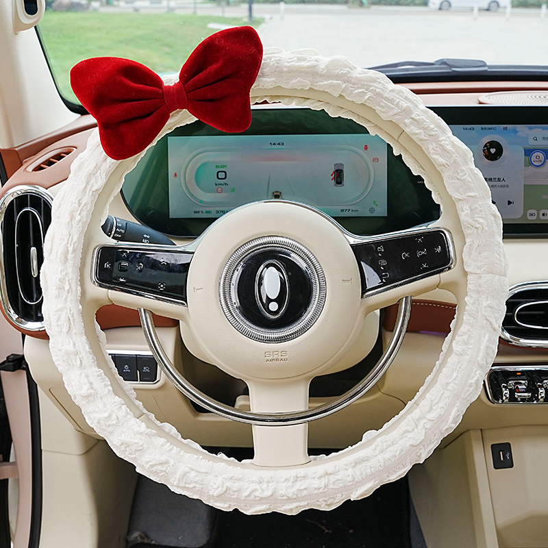 車のハンドルカバーの泡芙格車用の滑り止め通気性のあるハンドルカバーの赤い蝶結びの車のハンドルカバー