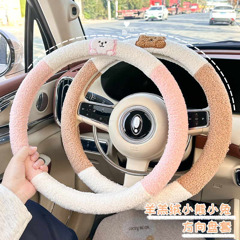 車のハンドルカバー冬のかわいいアニメ車の保温滑り止め車のハンドルカバー羊の小毛のハンドルカバーは通用します。