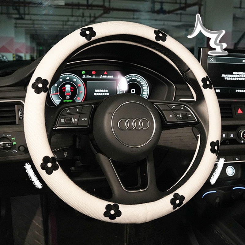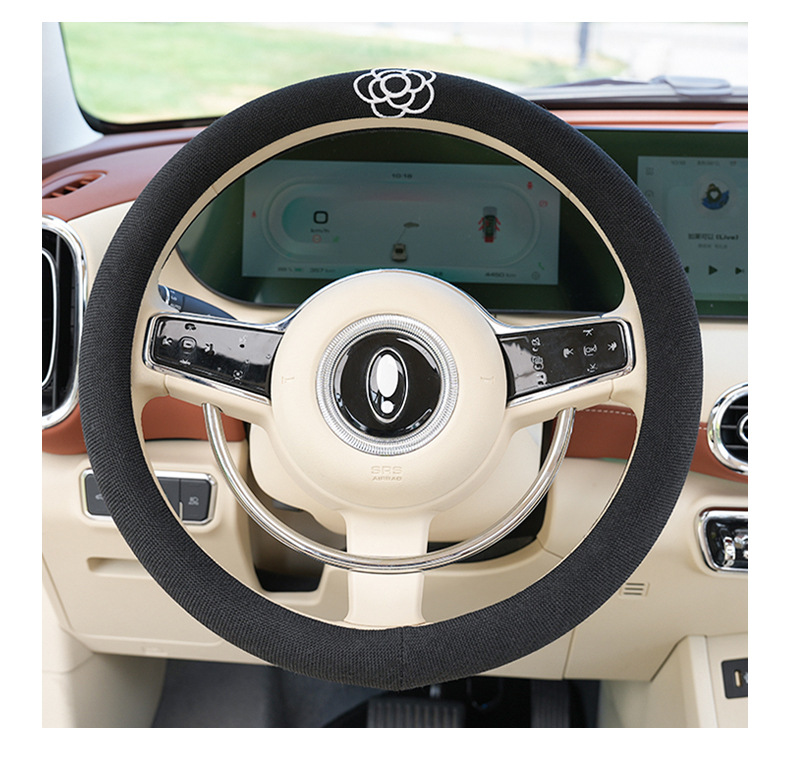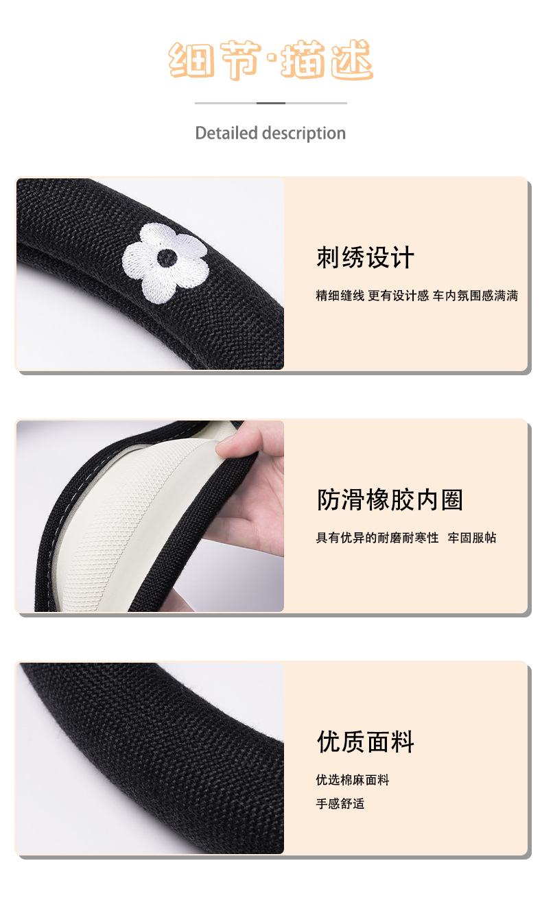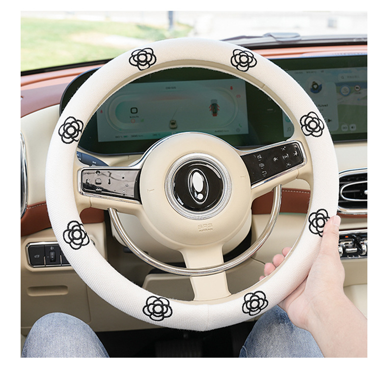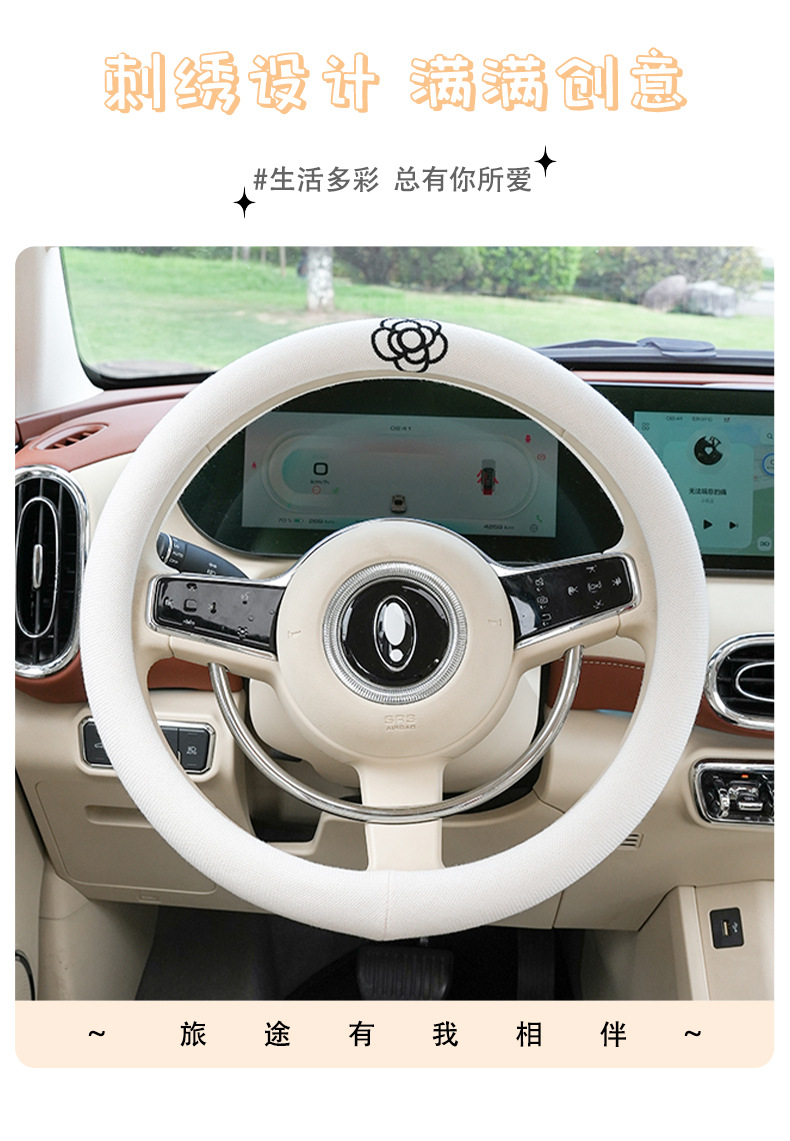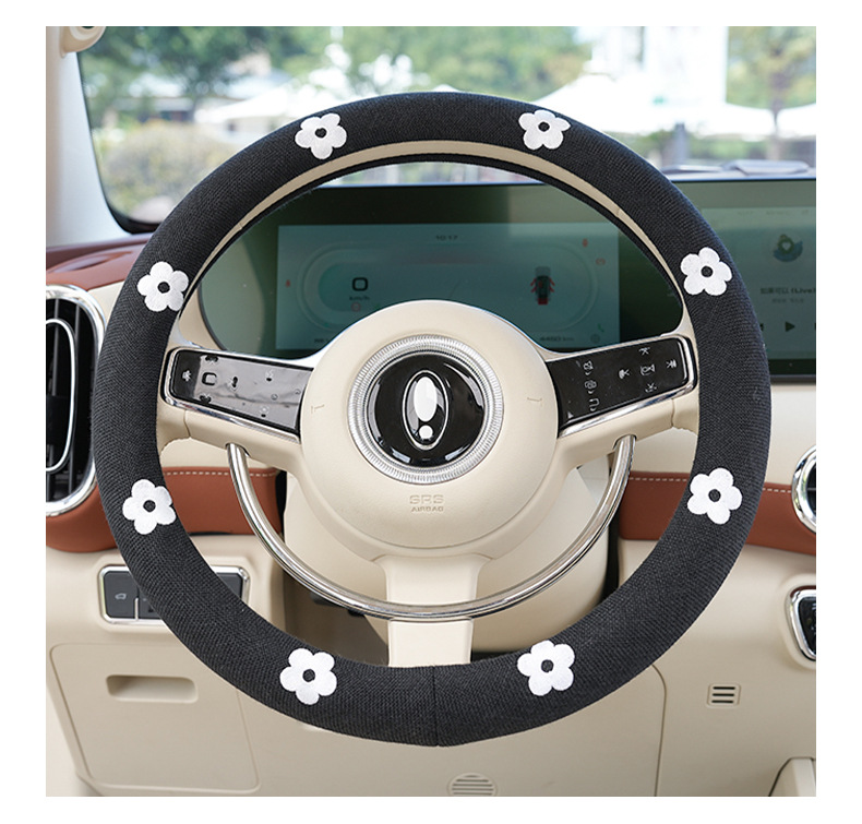 車のハンドルカバー綿麻刺繍車の滑り止め吸汗車のハンドルカバー四季通用の小さい菊のハンドルカバー