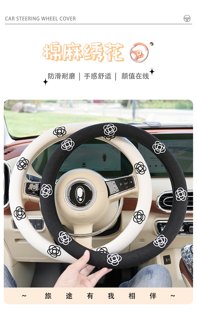 車のハンドルカバー夏綿麻山茶花車用滑り止めハンドルカバー四季通用ハンドルカバー卸売り