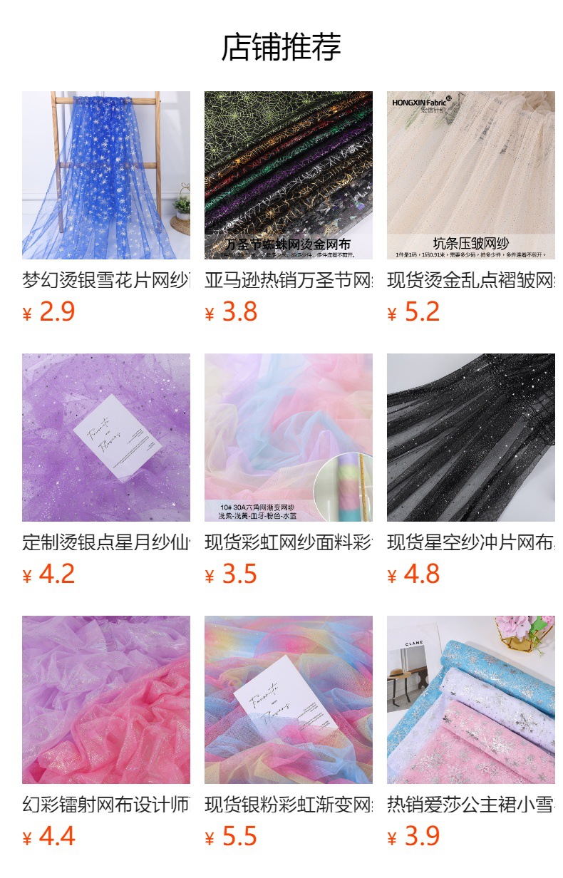 キラキラ光る金粉五角星網糸生地ハロウィーン礼箱撮影装飾布童装亮粉星糸薄紗