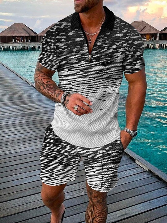 2022夏欧米セータープリントpoloシャツ男3dデジタルプリントtシャツズボンセットdiy卸売り