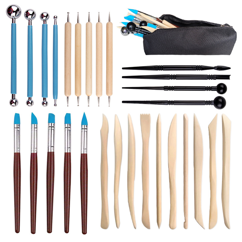 アマゾン陶芸道具28点セットプラスチック粘土点ドリルペン丸棒石軟陶泥転糖シリコン圧痕ペン