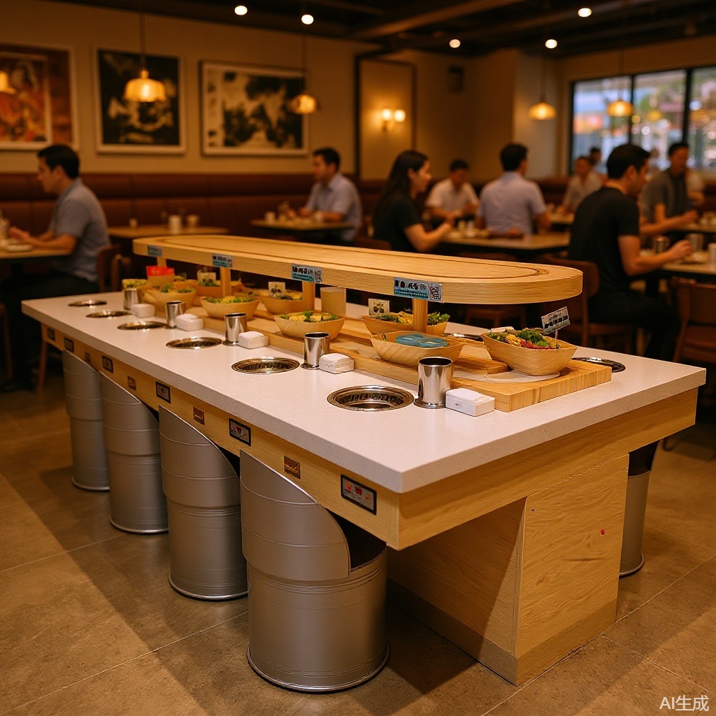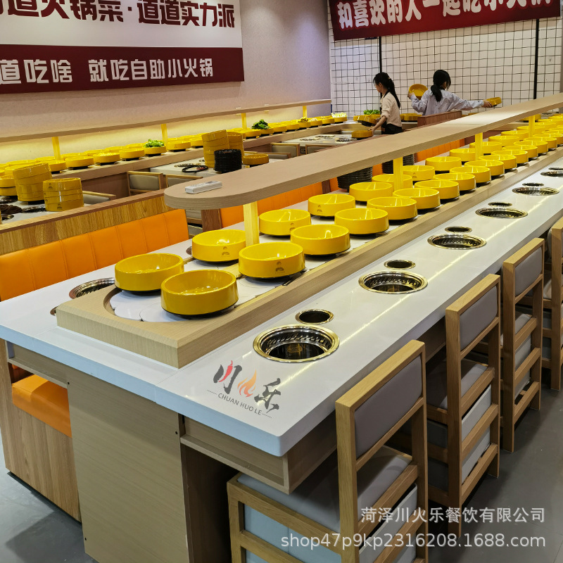 回転式小火鍋一式 業務用しゃぶしゃぶ・麻辣湯テーブル 一人一鍋コンベア火鍋店専用