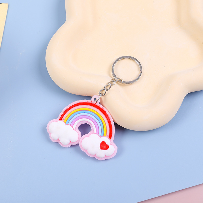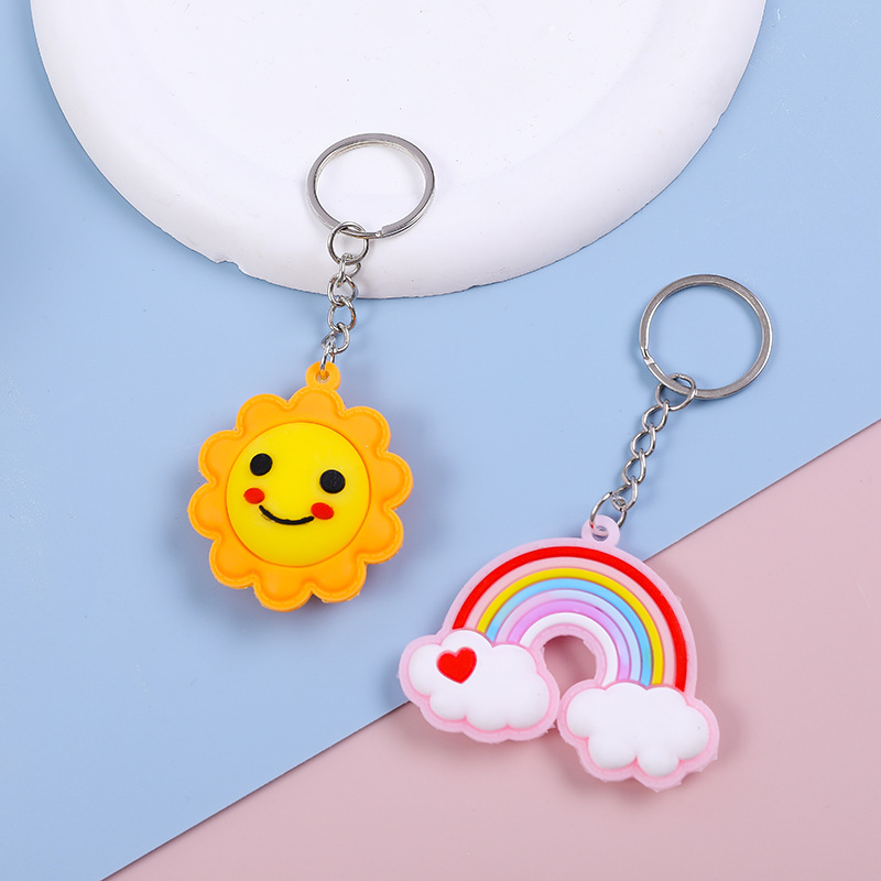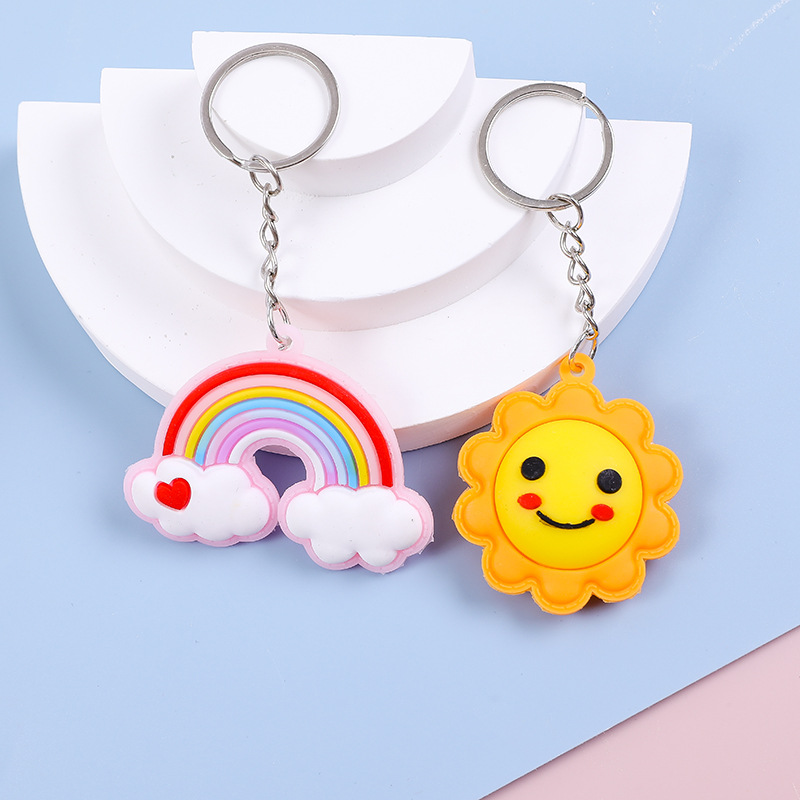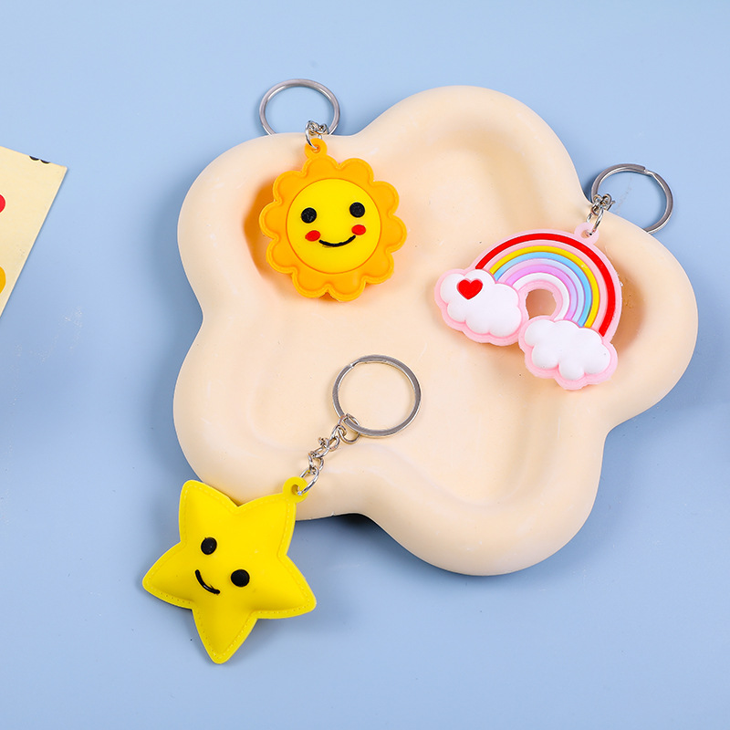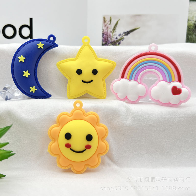 ソフトゴム虹星月キーホルダー部品掛け笑顔太陽花虹携帯ケース部品卸売り