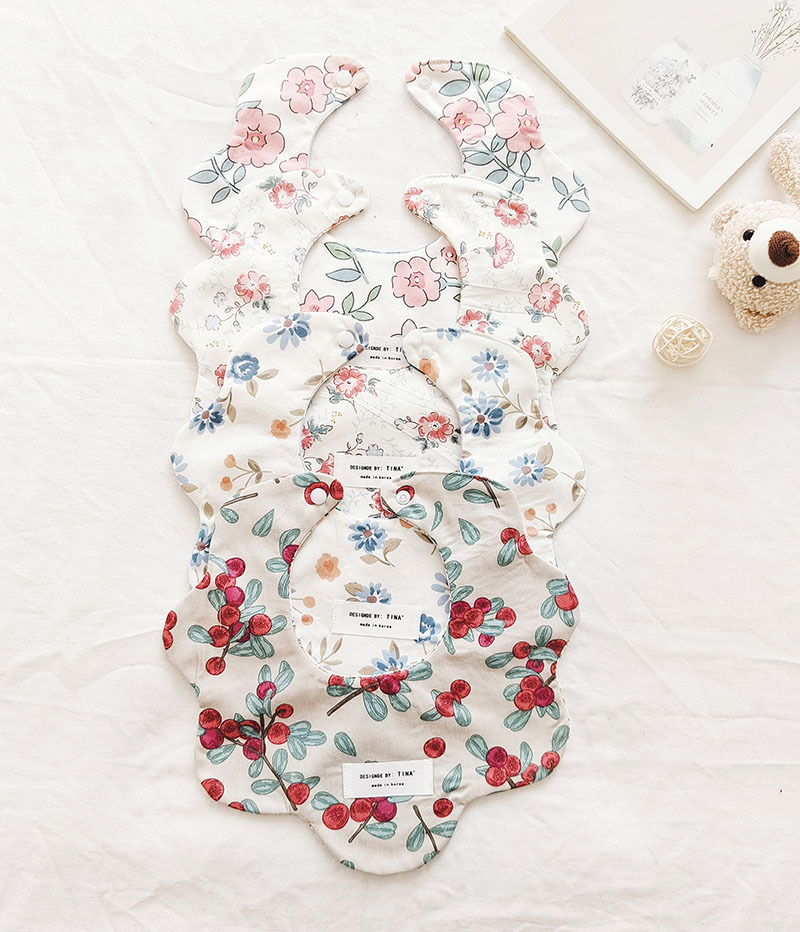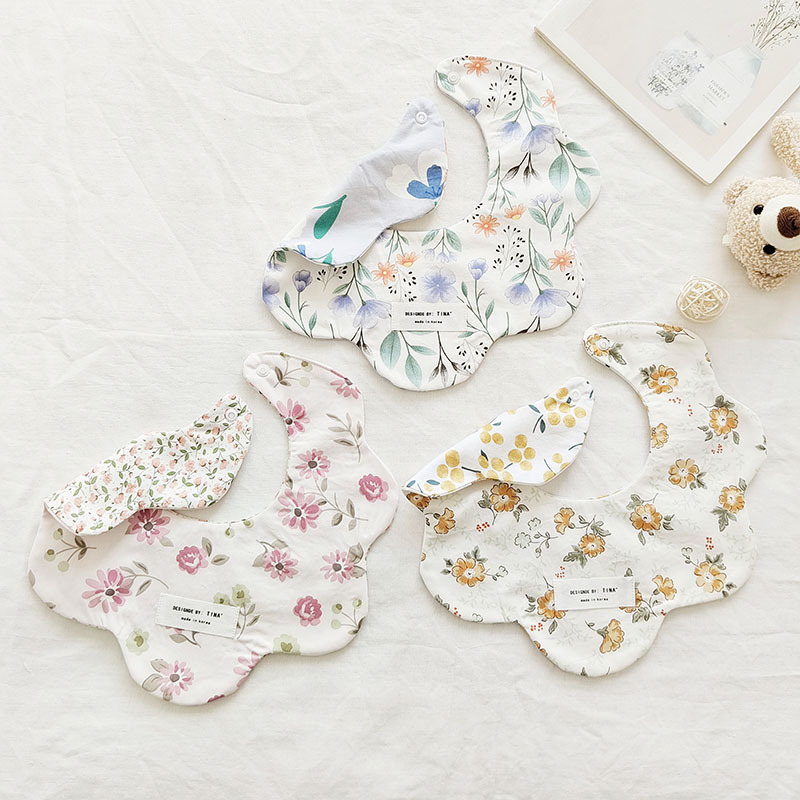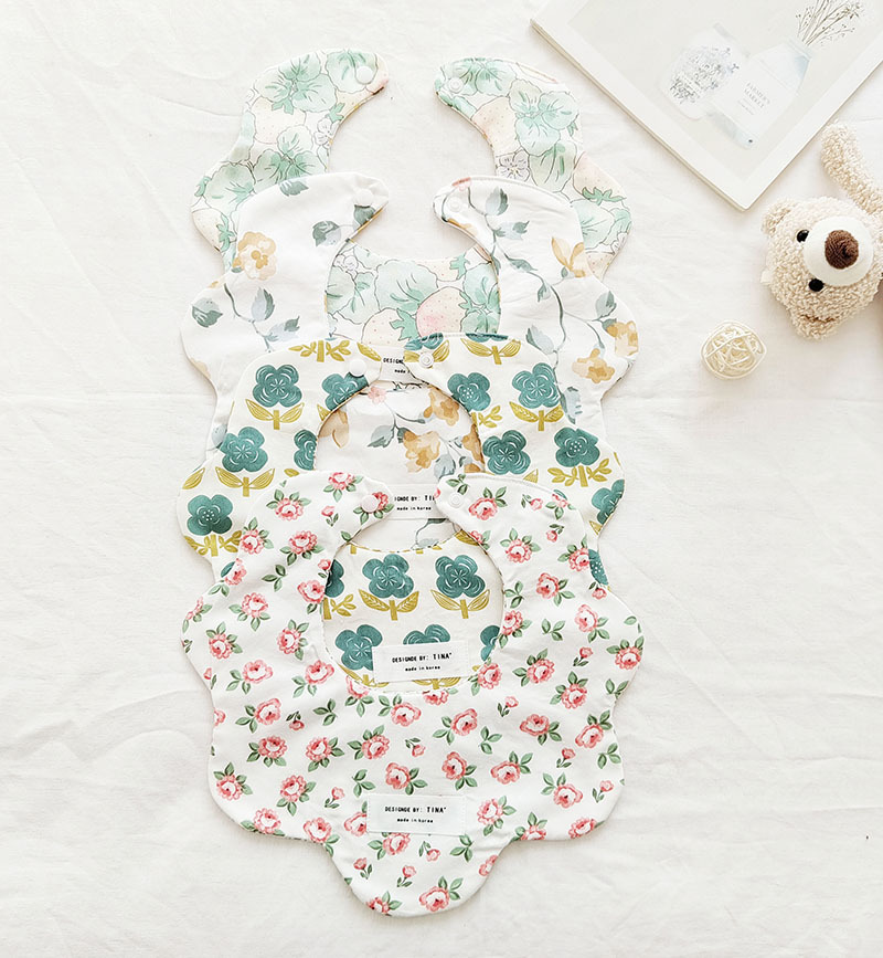 純綿の花びらが口を囲む子供の防水唾タオルは360度回転できます。