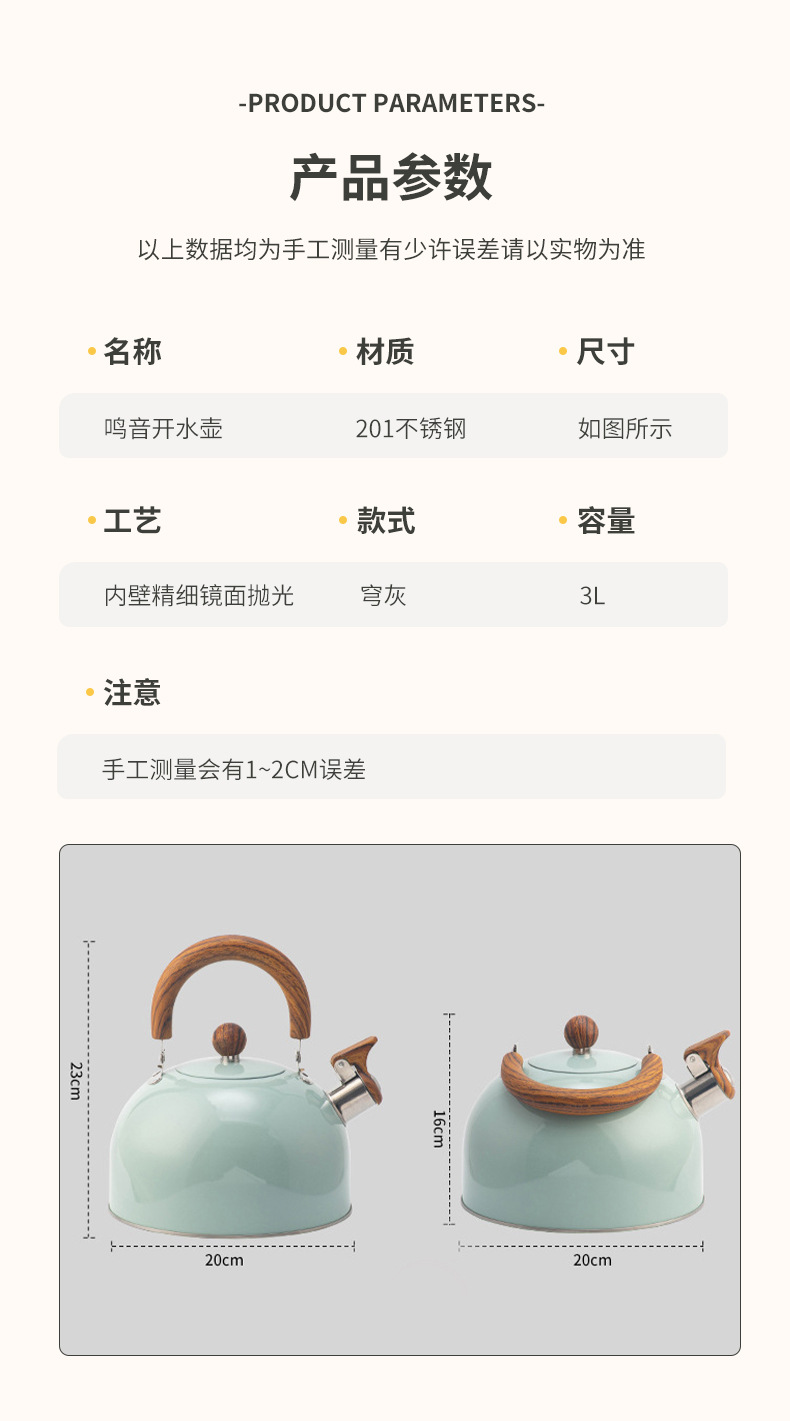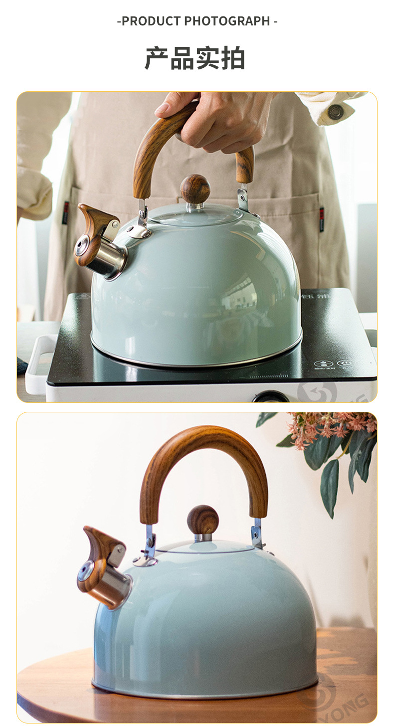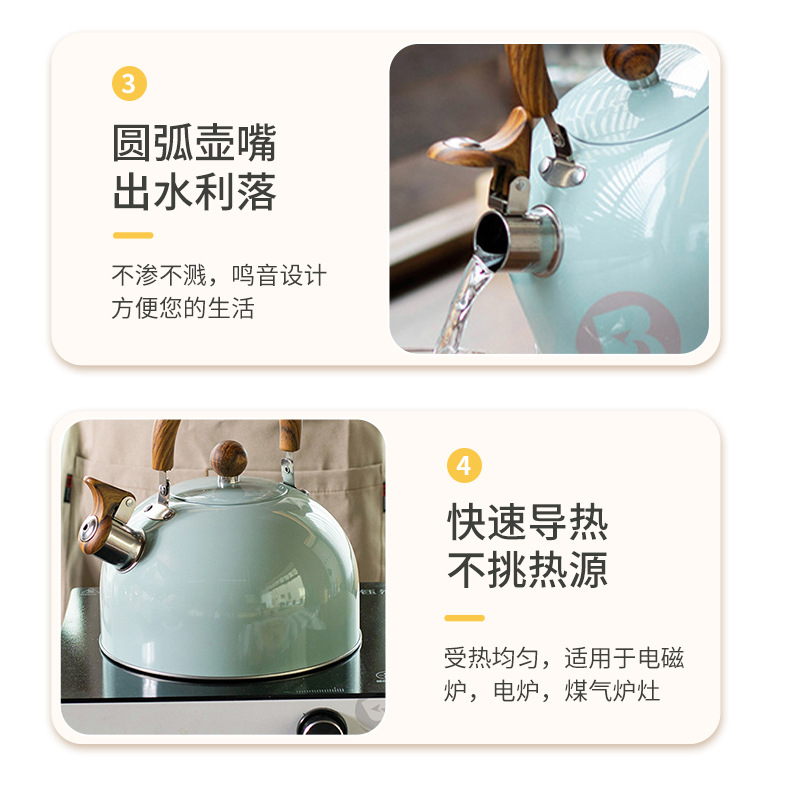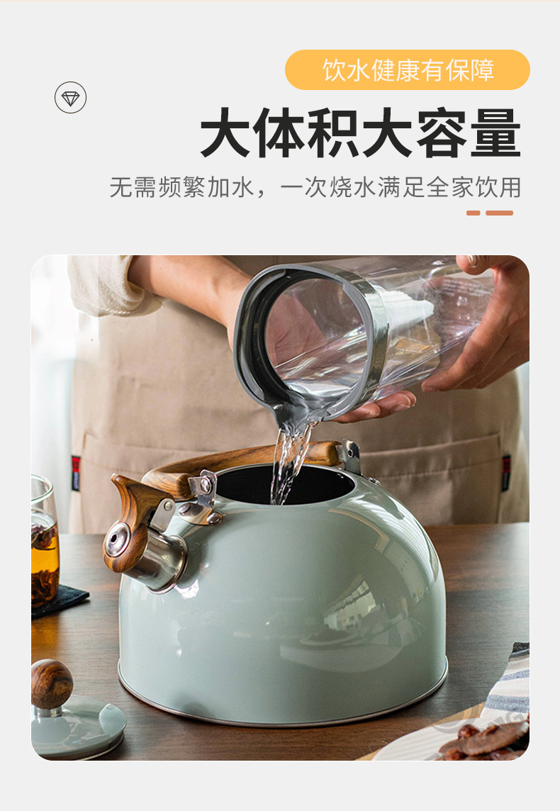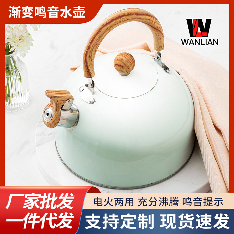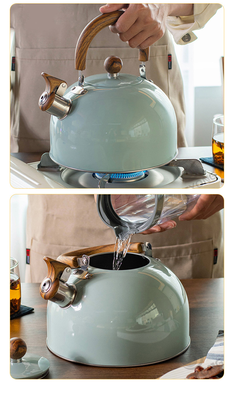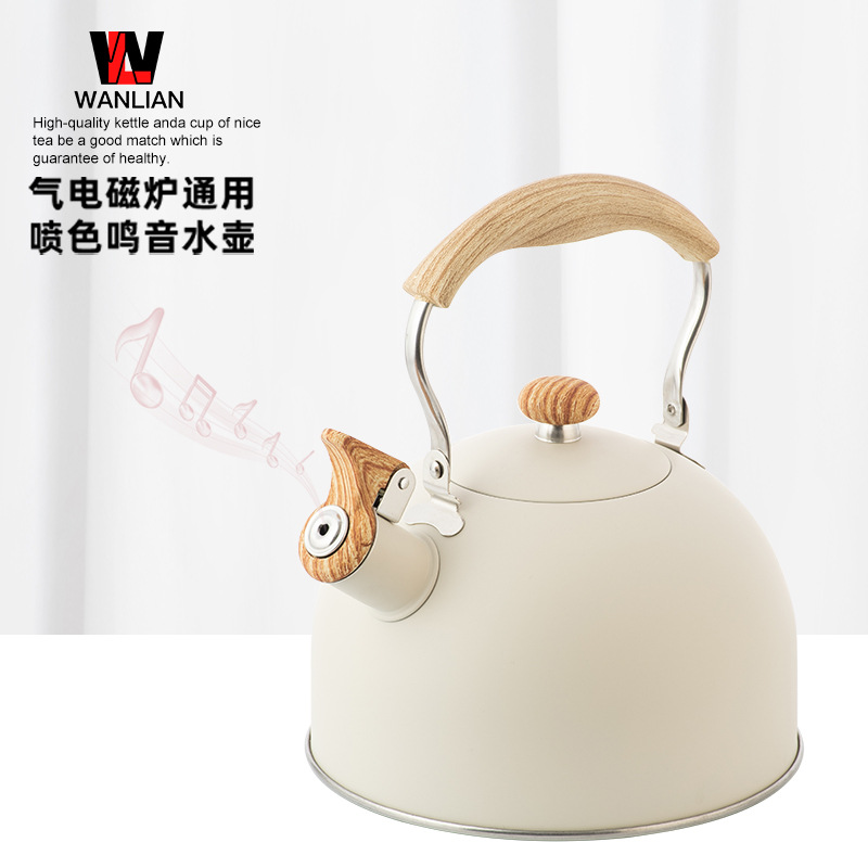 木目折り畳みハンドル笛湯沸かし器クロスボーダーステンレス鳴音壺欧米軽豪華3l口笛壺白色