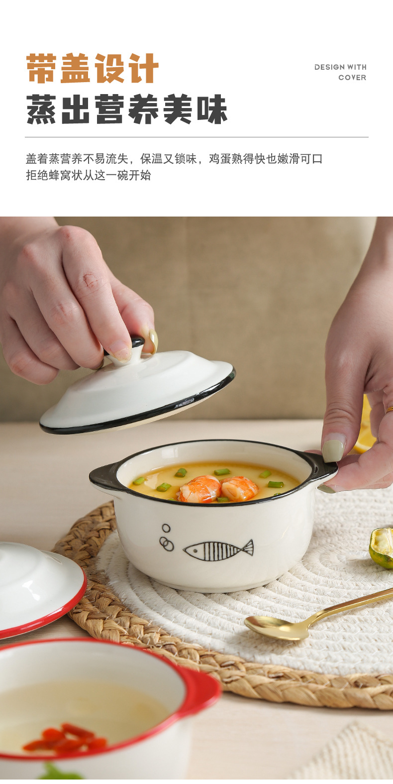 婴儿蒸蛋碗宝宝辅食小蒸碗家用带盖陶瓷鸡蛋羹双皮奶布丁甜品炖盅