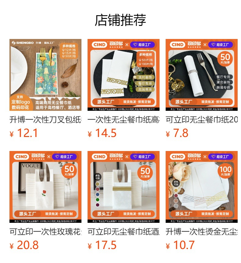 工場直販 厚手布地柄カトラリー紙 使い捨て無塵ナプキン ホテル宴会パーティー用 カスタマイズ可能