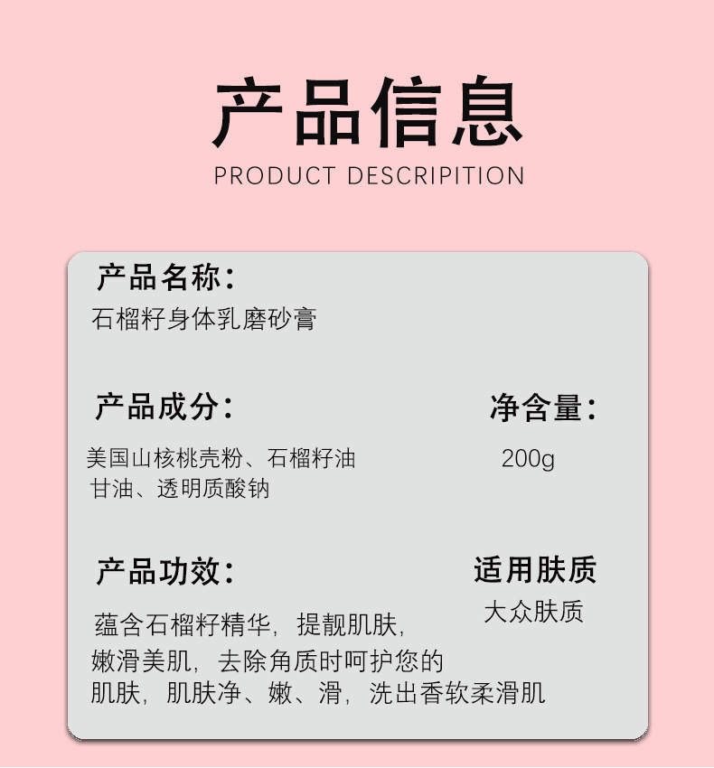製品仕様 キセ ザクロ種子 ボディスクラブ 200g