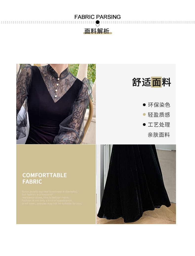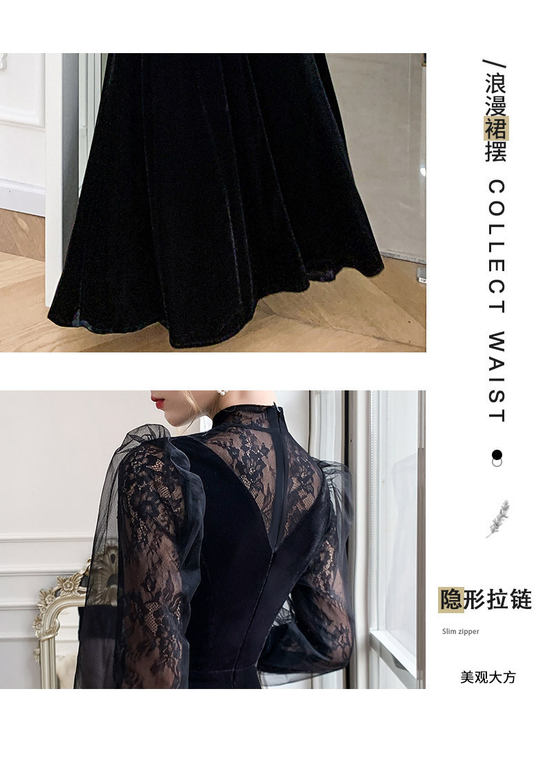黒長袖イブニングドレス女性のための 2025 春夏新スタイルホスト年次総会ベルベット大きいサイズ普段着ドレス