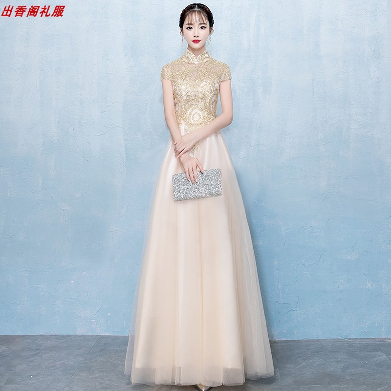 中国風の女性用イブニングドレス2025年宴会合唱会年次総会旗袍司会者衣装ロングドレス高級感のある晩餐会衣装